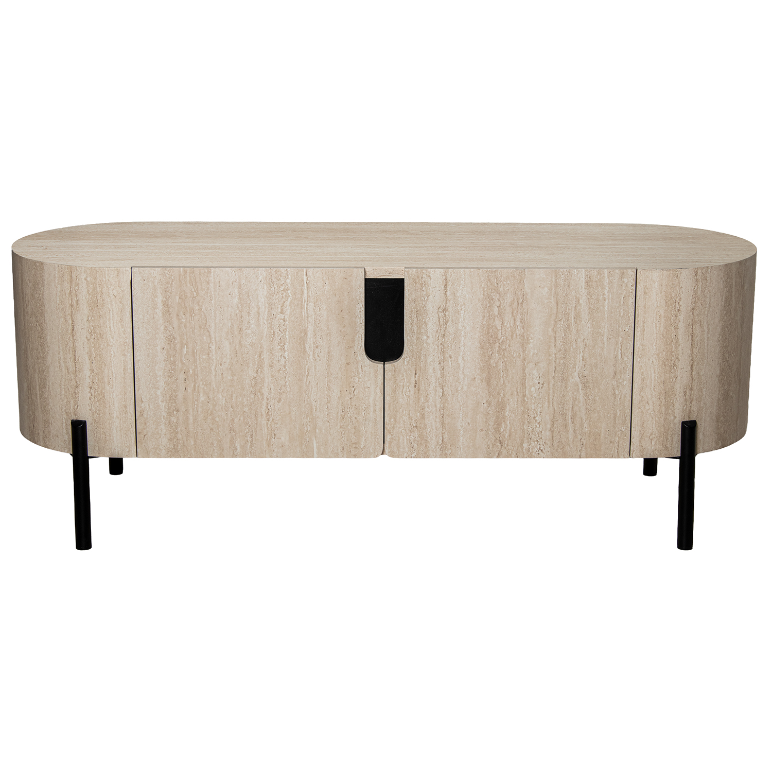 MESA TV MADERA DM+PAPEL TRAVERRAVERTINO C/PATAS METAL NEGRO