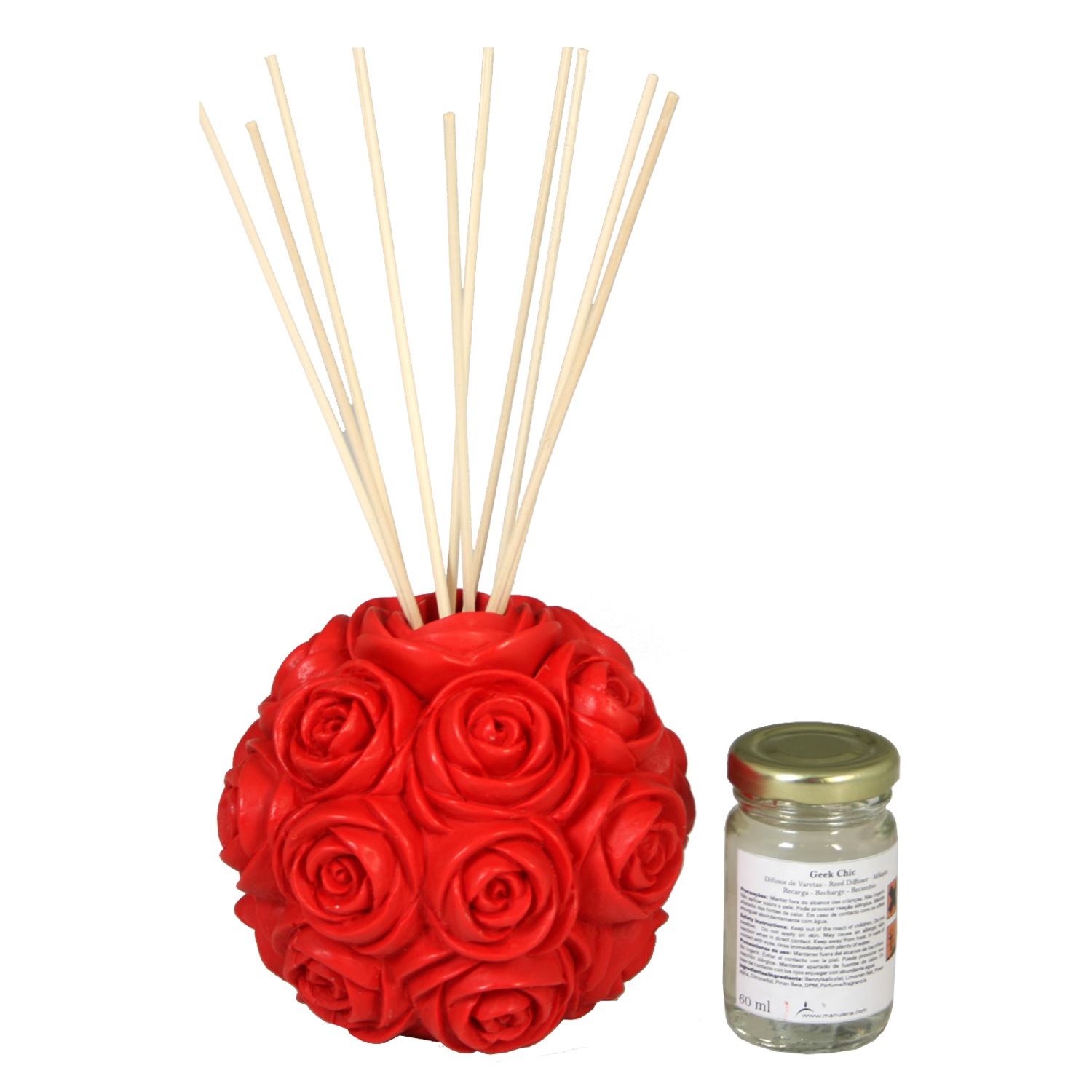 MIKADO ROSA ROJA _ROSA:ø13 CMø13 CM BOTE:100 ML. 10 V ARILLAS DE 30 CM
