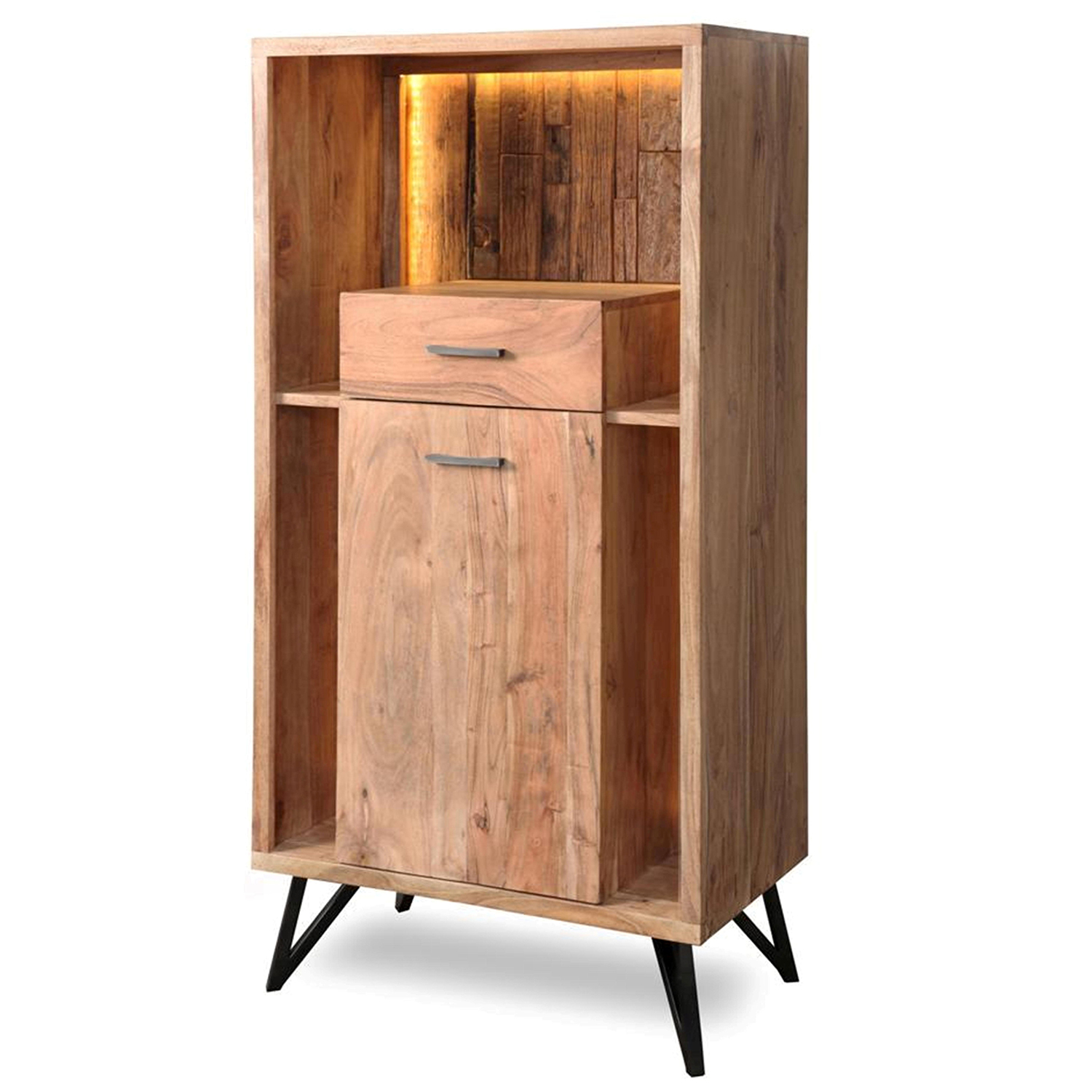 MUEBLE ENTRADA MADERA ACACIA CONES C/LUZ LED, PATAS HIERRO _72X40X150CM, PATAS DE HIERRO