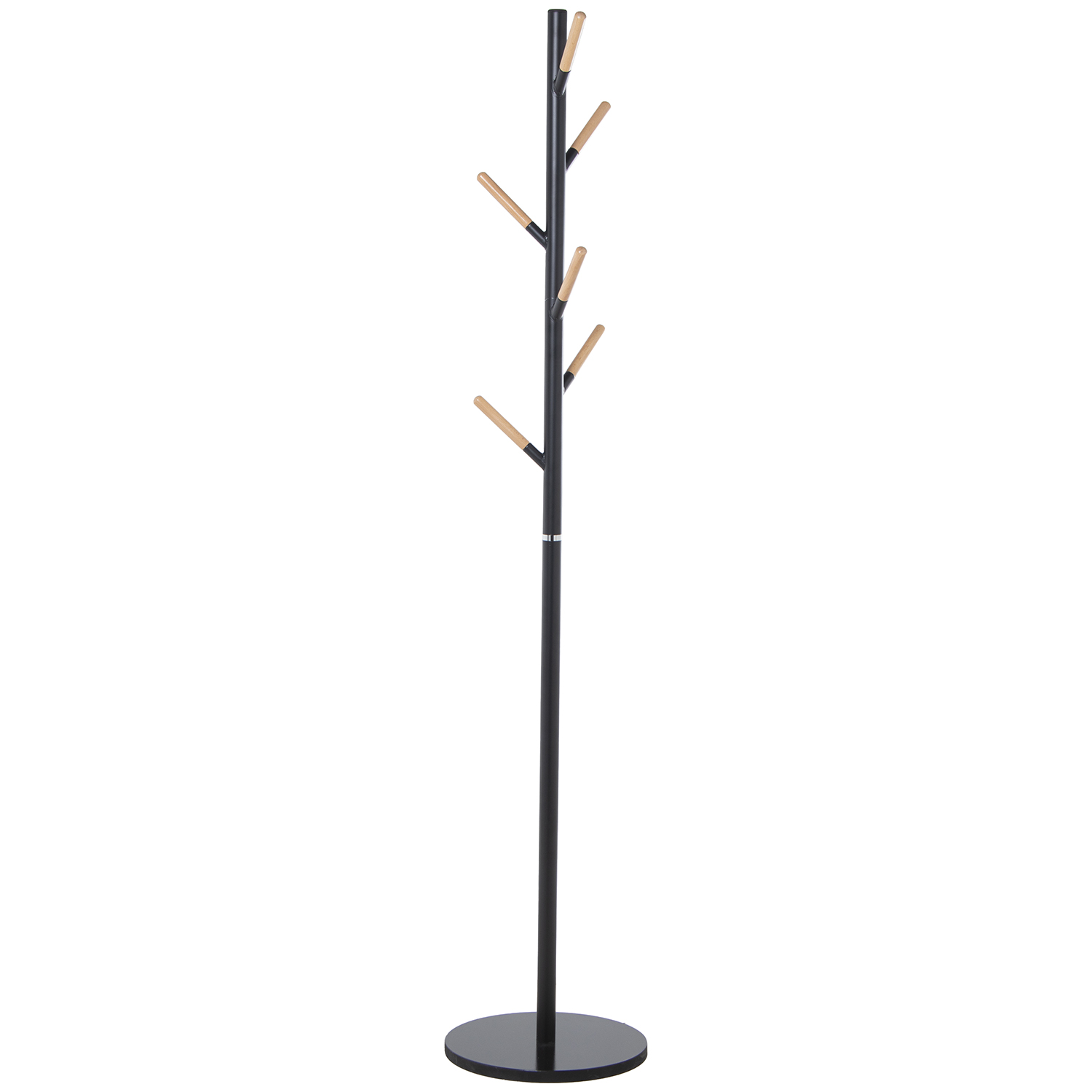 PERCHERO METAL NEGRO 6 POMOS MMADERA NATURAL C/BASE MÁRMOL _ø34X172CM, GROSOR:1,5CM