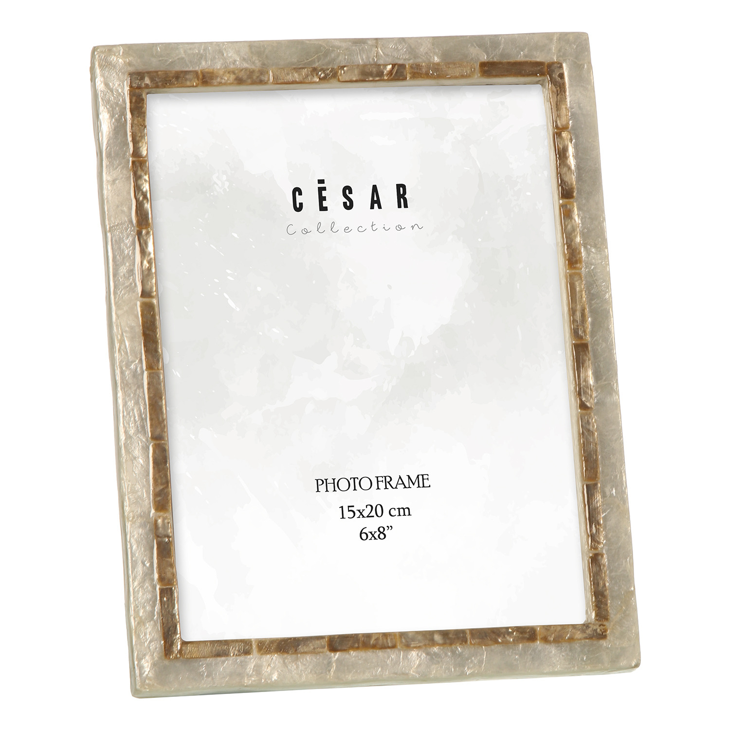 PORTAFOTOS 15X20CM NÁCAR NATURAL C/RECT. TOSTADO MARCO FINO _EXT:18,8X22,8X1,2CM