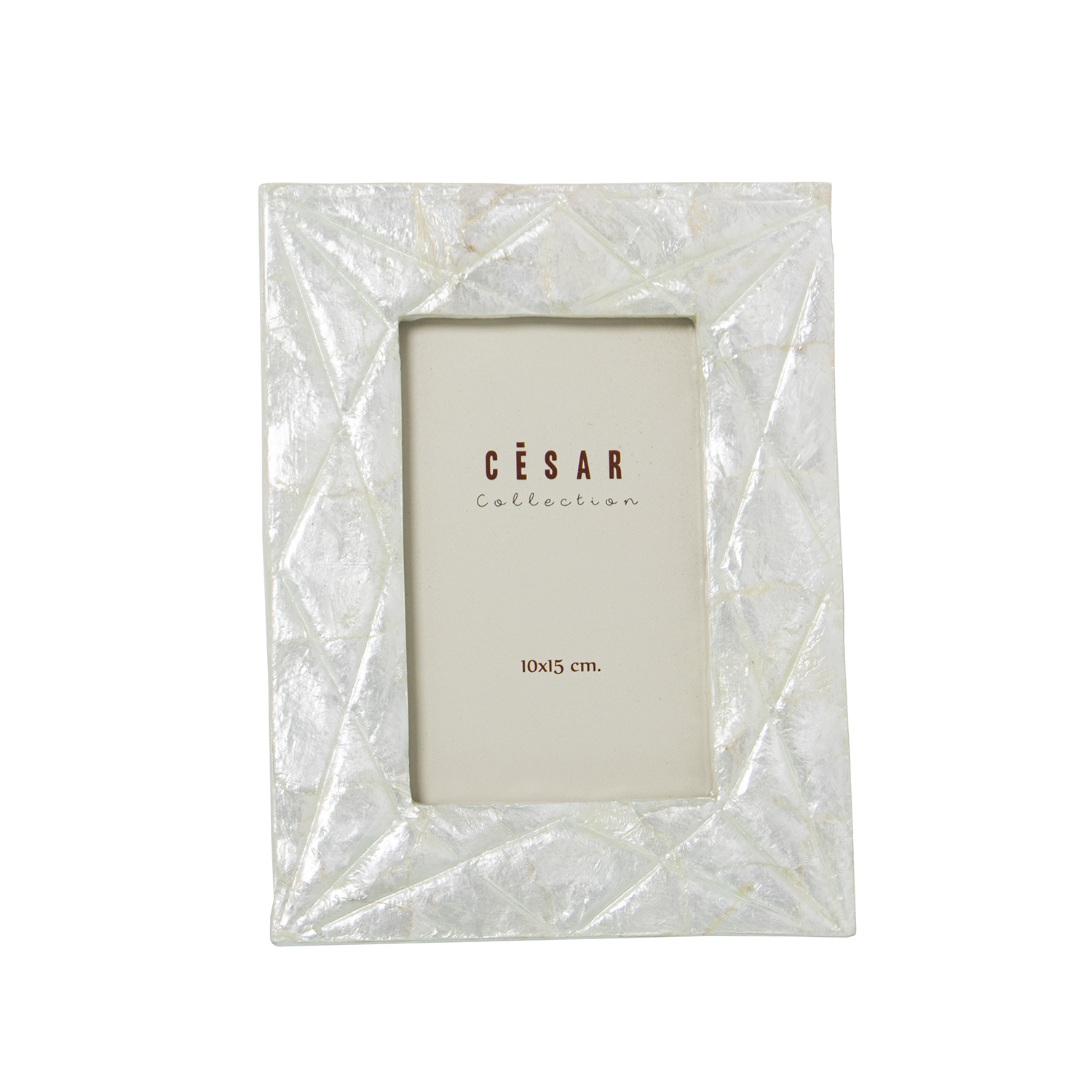 PORTAFOTOS NÁCAR 10X15CM ROMBOS GRIS _EXT:17X22X1CM