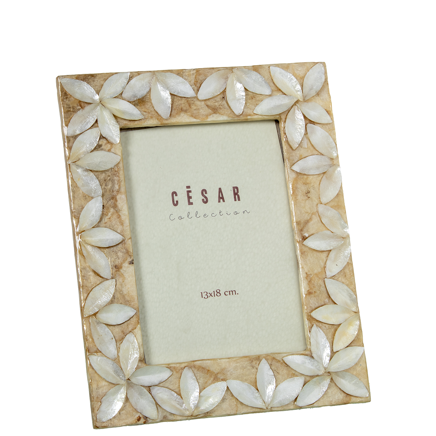 PORTAFOTOS NACAR 13X18CM FLORES RELIEVE NATURAL/TOSTADO _EXT.19,5X24,5X1CM