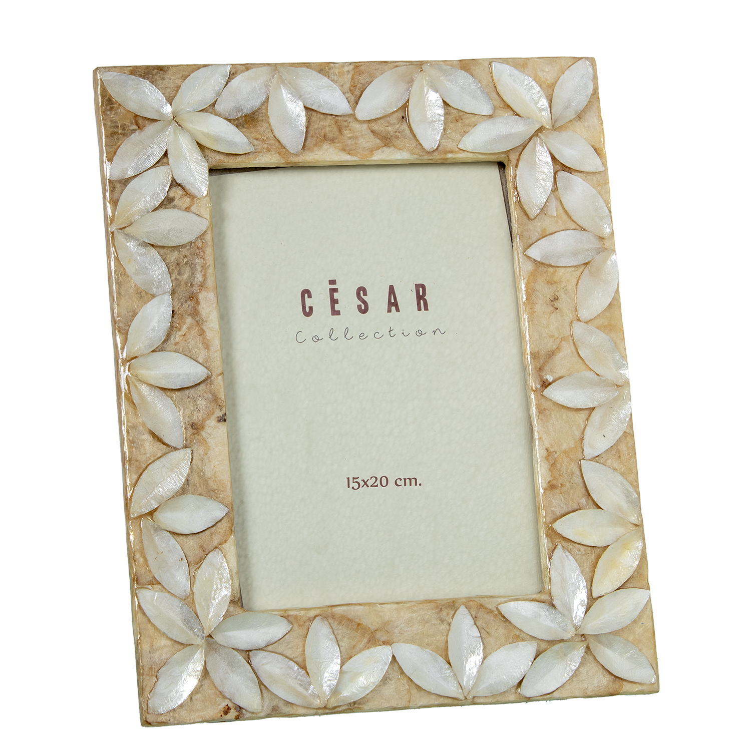 PORTAFOTOS NACAR 15X20CM FLORES RELIEVE NATURAL/TOSTADO _EXT:22X27,5X1CM