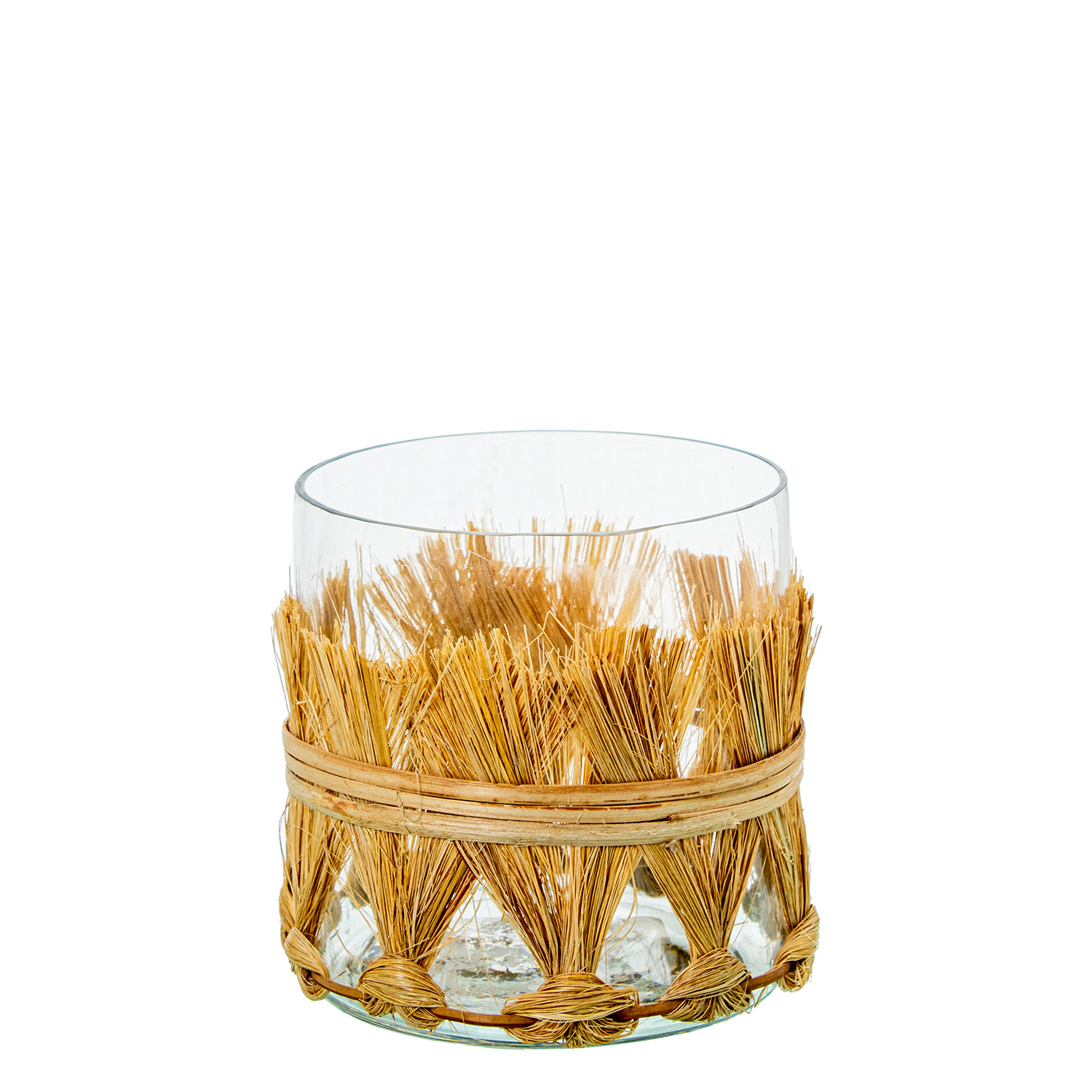 PORTAVELAS CRISTAL C/RAFIA _ø11X10CM