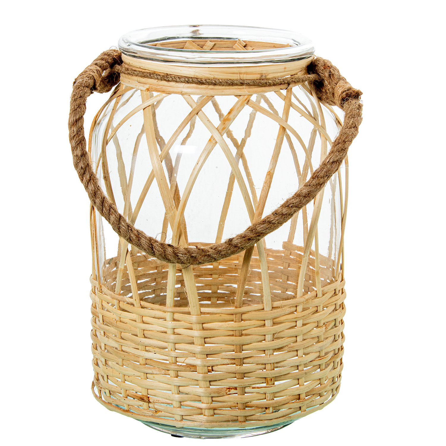 PORTAVELAS CRISTAL/MIMBRE C/AS _ø21X30CM