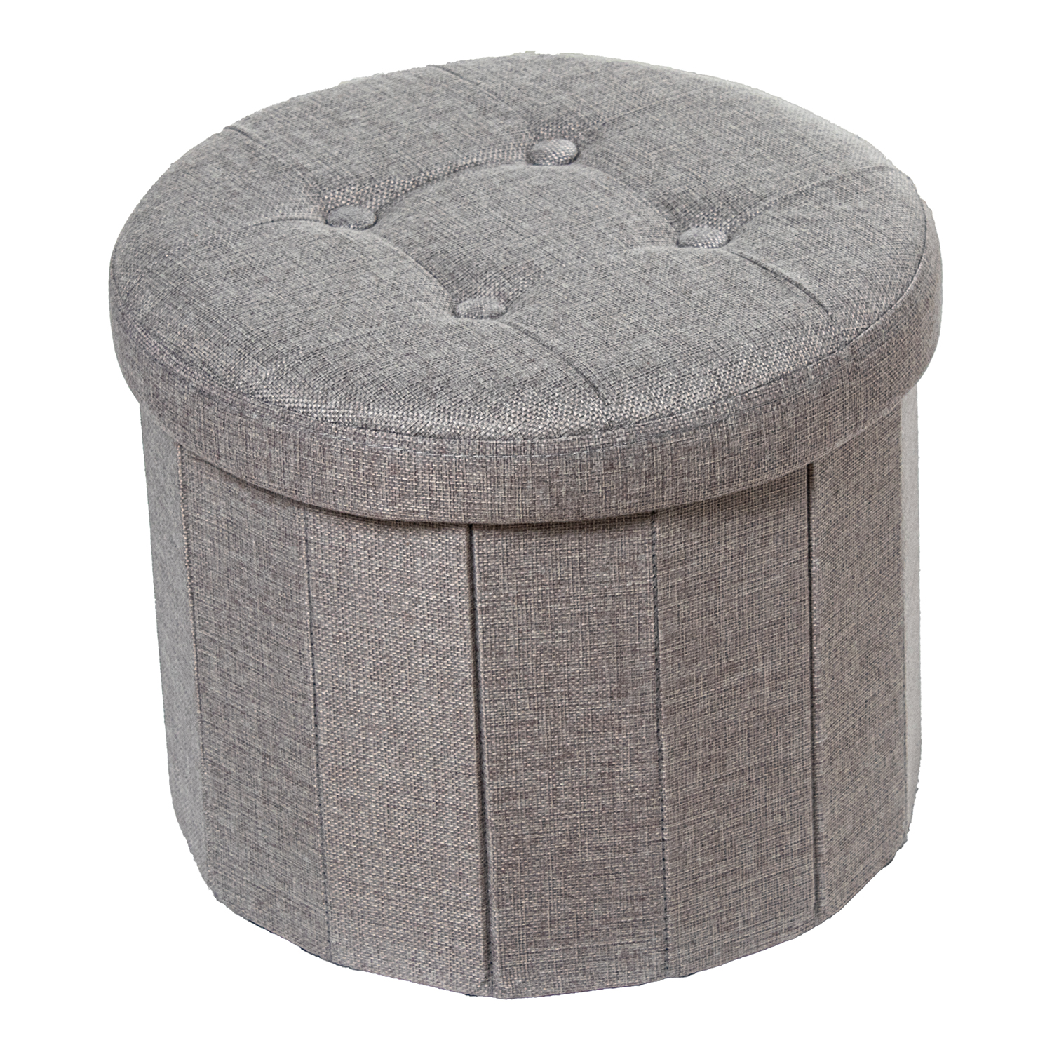 PUF PLEGABLE POLIÉSTER GRIS ALAMUZA ALMACENAJE _ø38X38CM