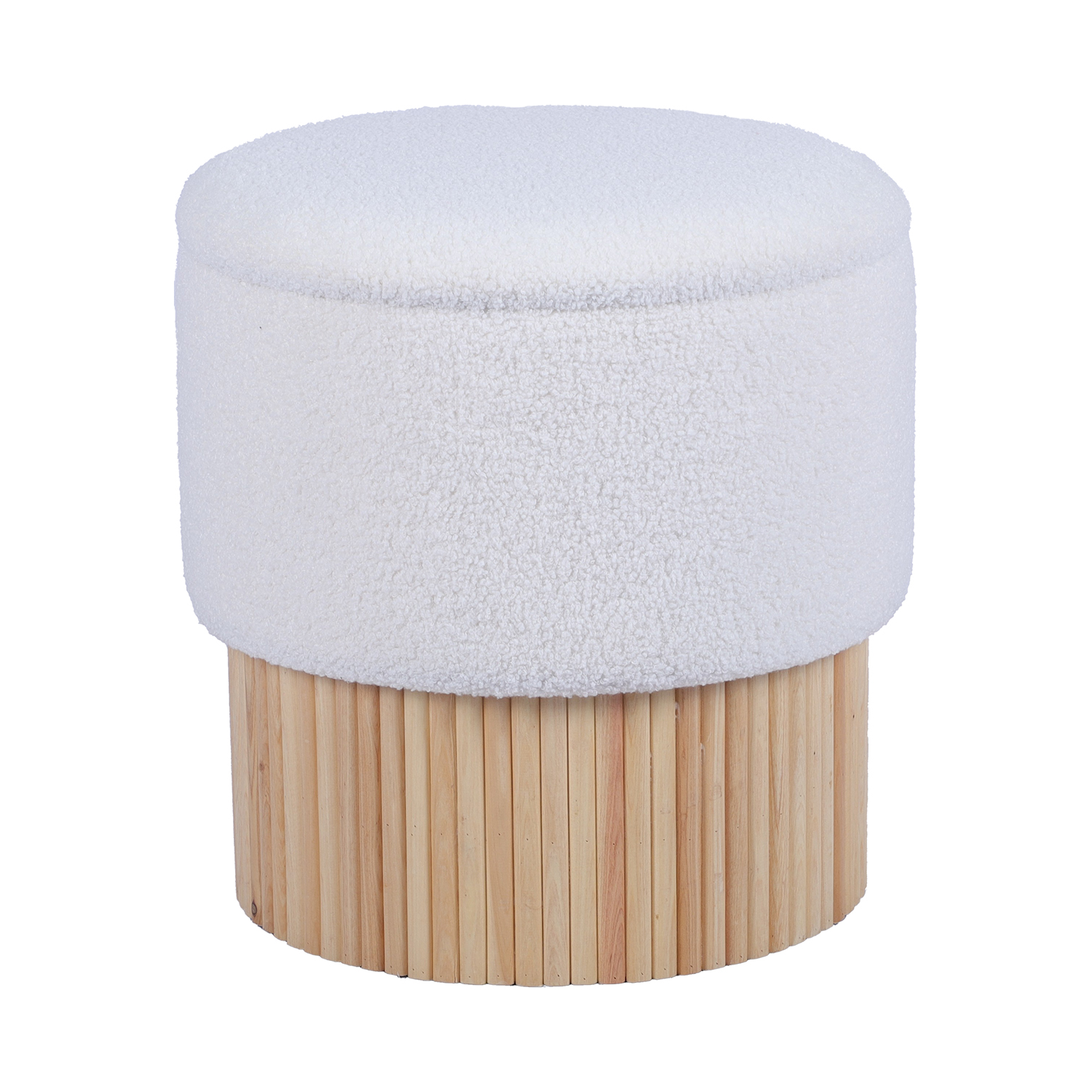 PUF TAPIZADO BLANCO C/BASE MADÚ C/TAPA GRIS OSCURO ACOLCHADA _ø39X41CM