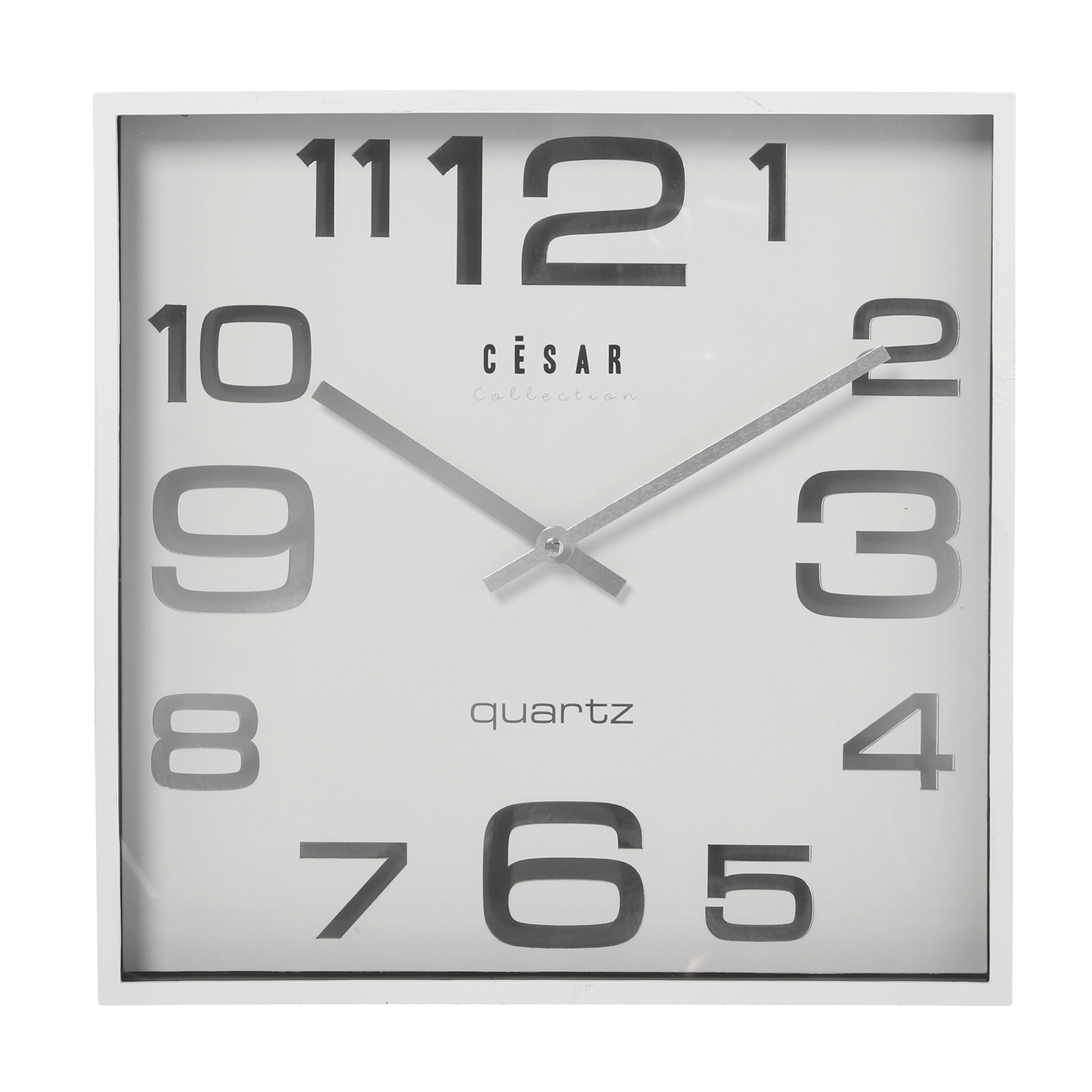 RELOJ PARED ACRÍLICO BLANCO FILO PLATA-MVTO.SEGUNDERO CONTI 28X28X4CM PILA:1XAA(NO INCLUI
