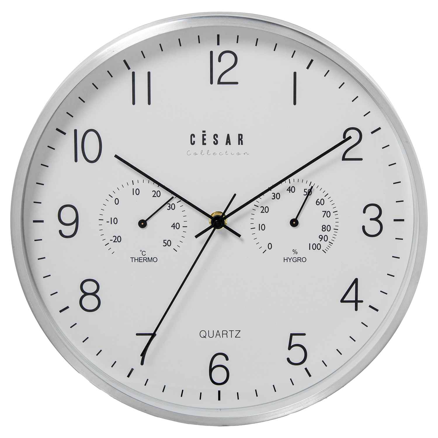 RELOJ PARED ALUMINIO 30CM MARCO DORADO C/TERMÓMETRO E HIGROM _ø30X4CM PILA:1XAA NO INCLUIDA