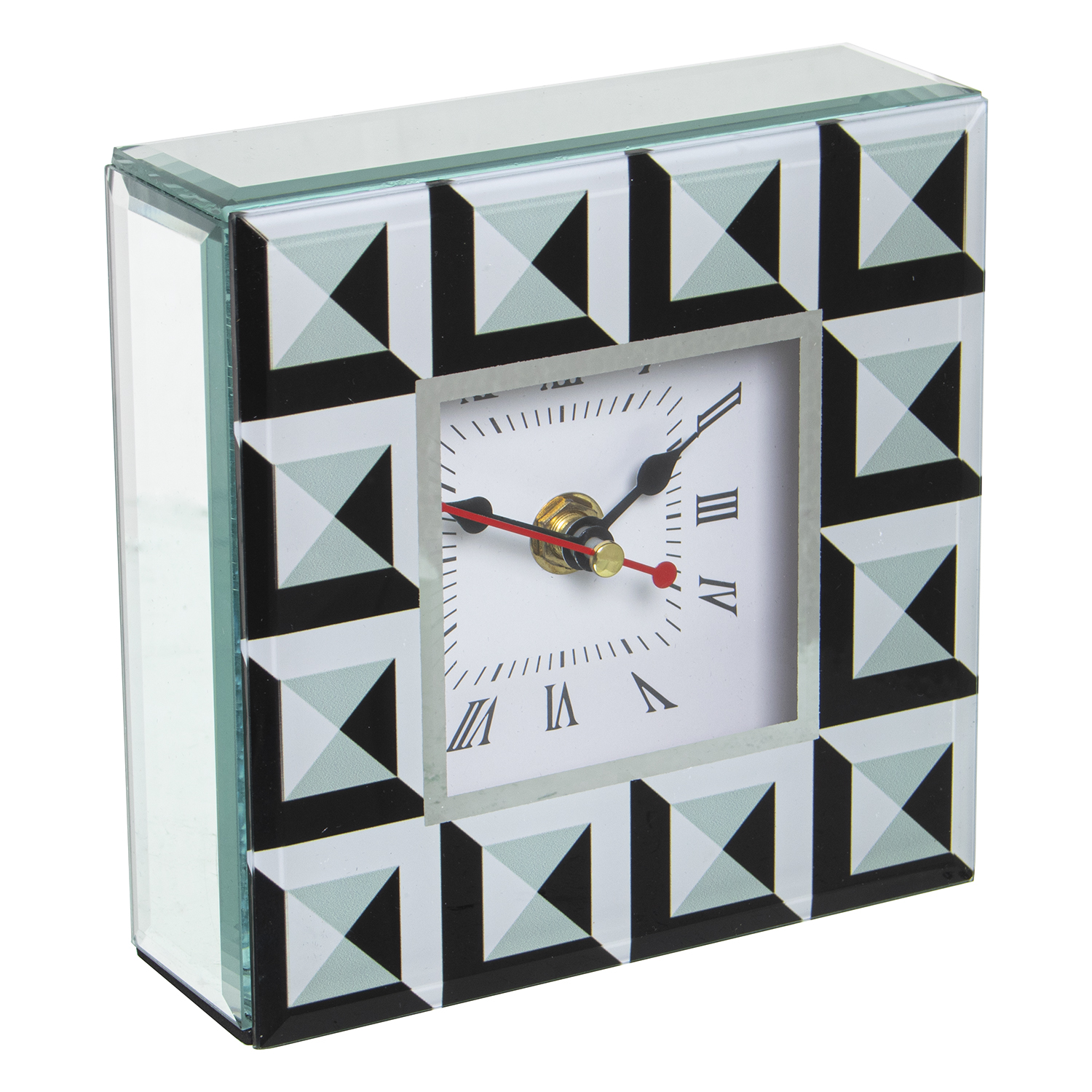 RELOJ SOBREMESA CRISTAL/MADERANCO/NEGRO