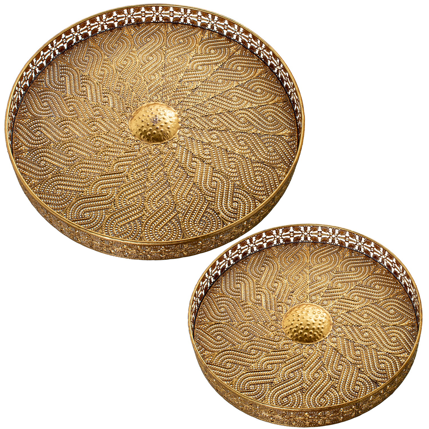 SET 2 BANDEJAS CENTRO DE MESAMETAL DORADO _ø45X5+ø36X5CM