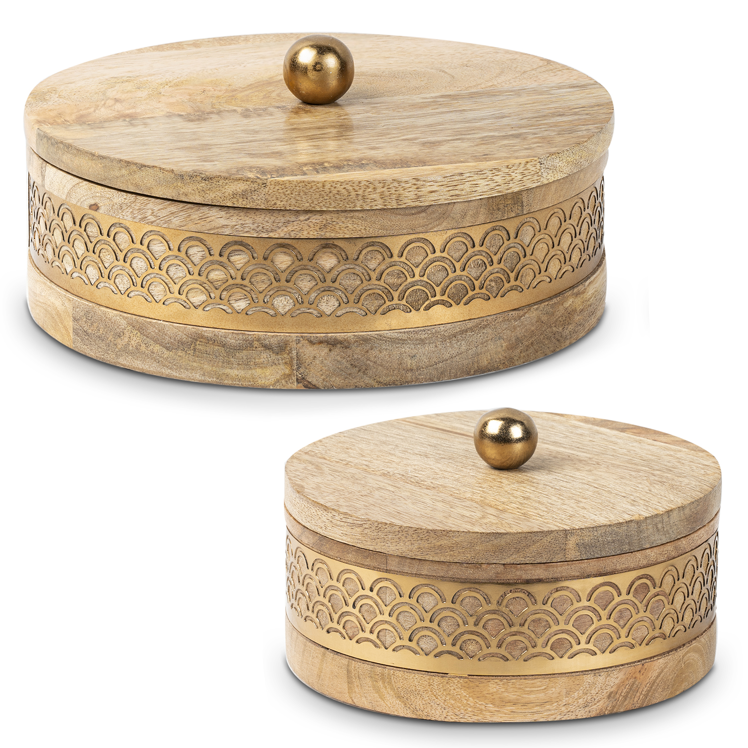 SET 2 CAJAS MADERA/METAL DORADO _ø20X8+ø15X8CM