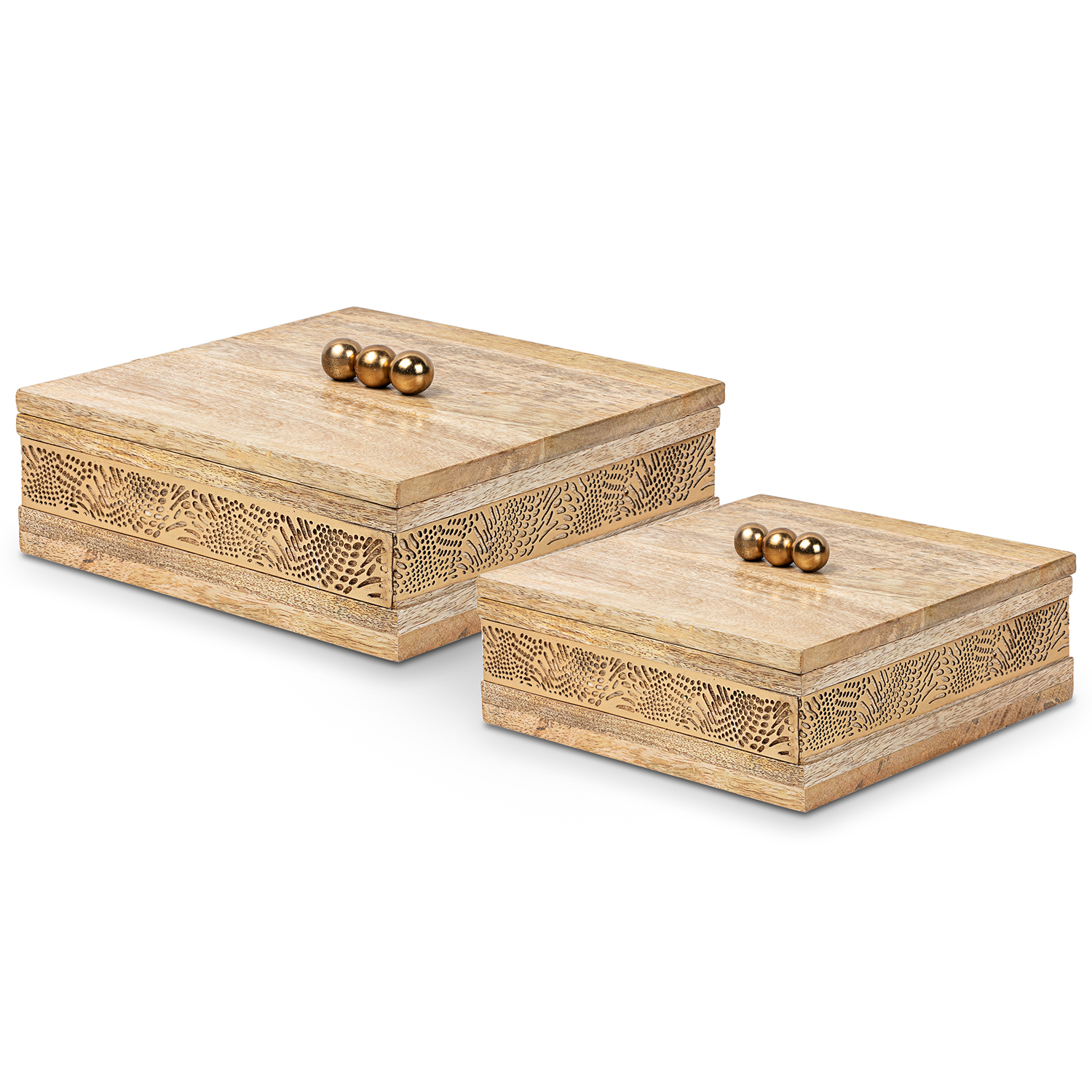 SET 2 CAJAS MADERA/METAL DORADO _21X21X8+16X16X8CM