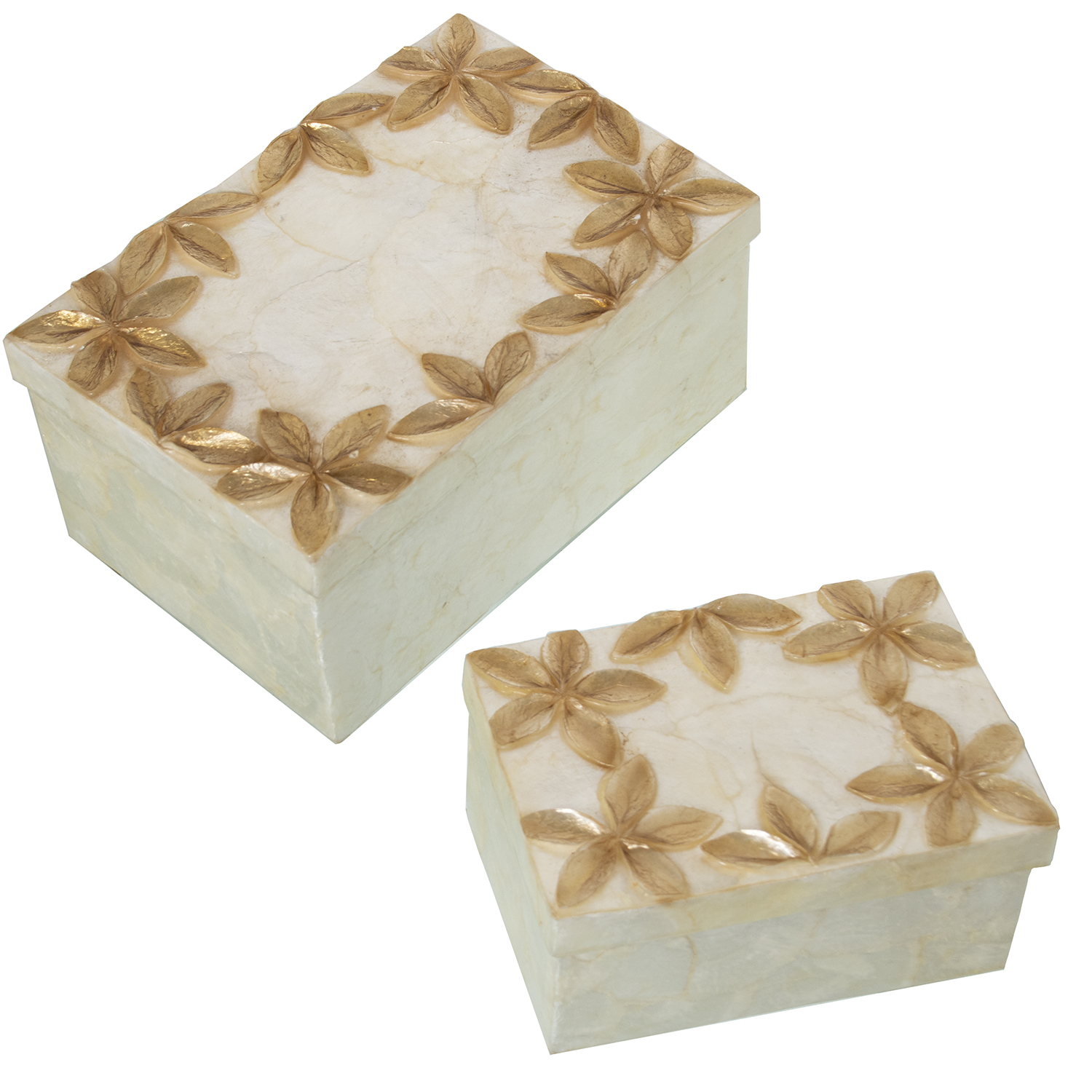 SET 2 CAJAS RECT. NÁCAR FLORESEVE TOSTADO/NATURAL