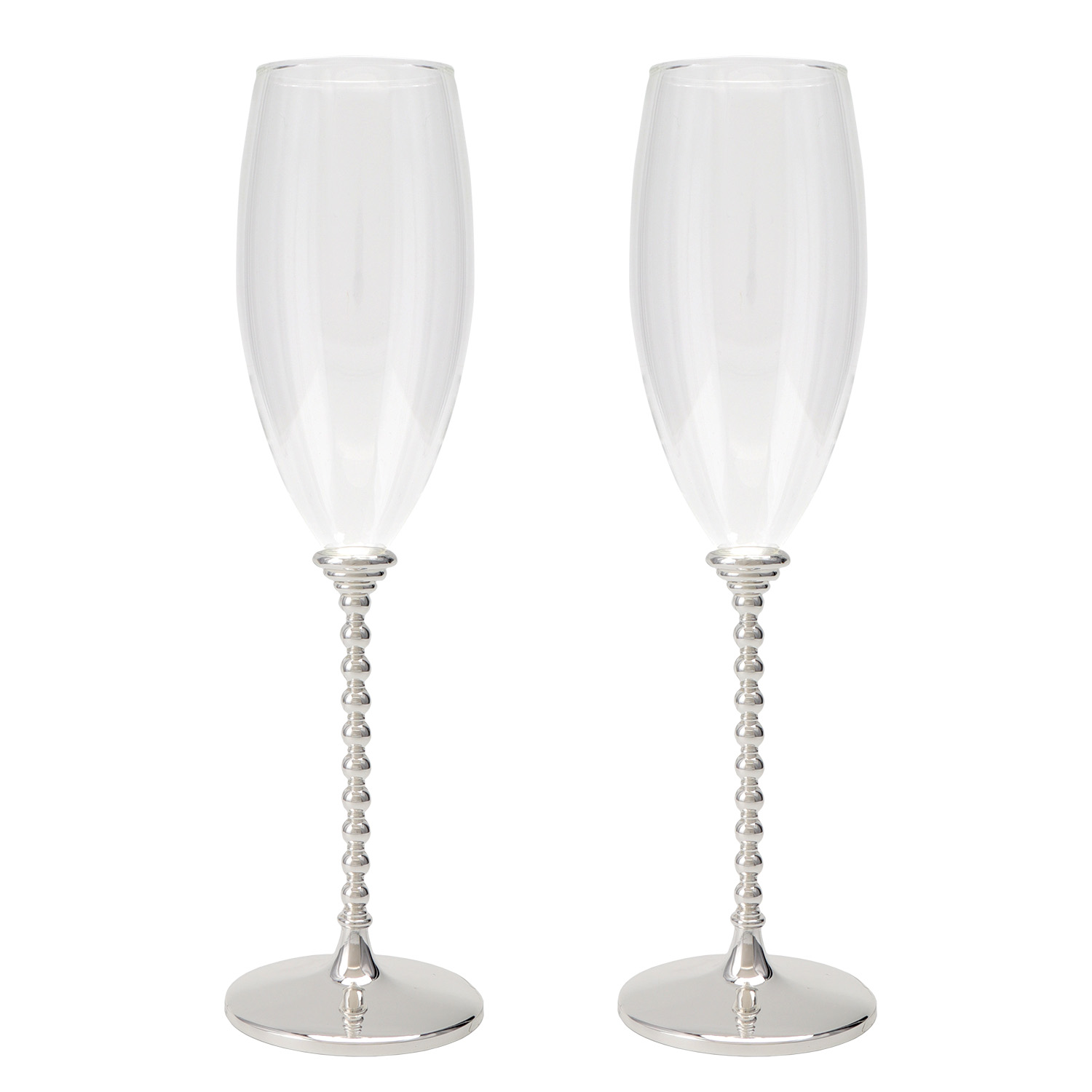SET 2 COPAS CAVA C/PIE METAL PLATA/ORO Y CRISTALES _ø7X24,5CM