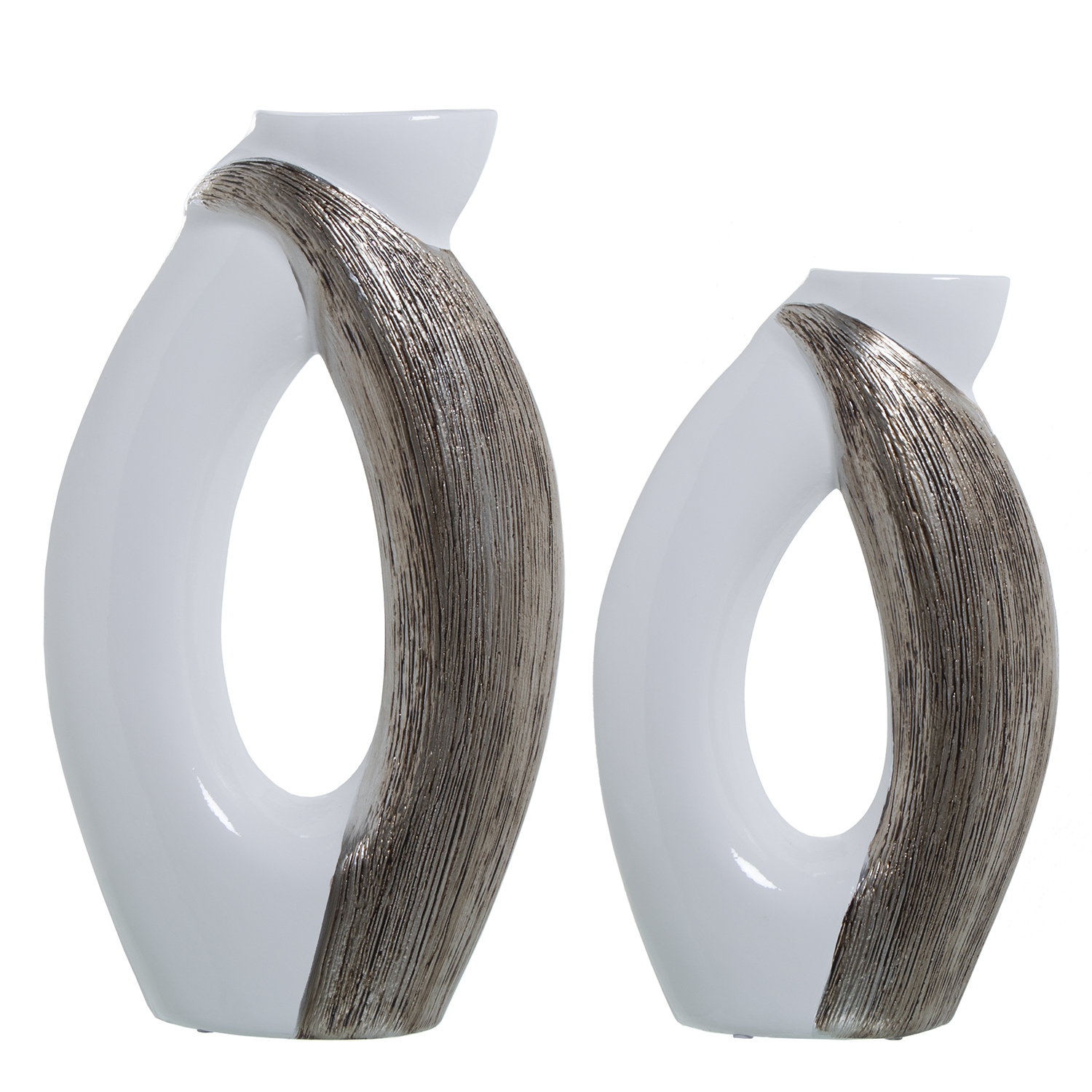 SET 2 JARRONES BLANCO/PLATA 27X9X47+24X9X40CM
