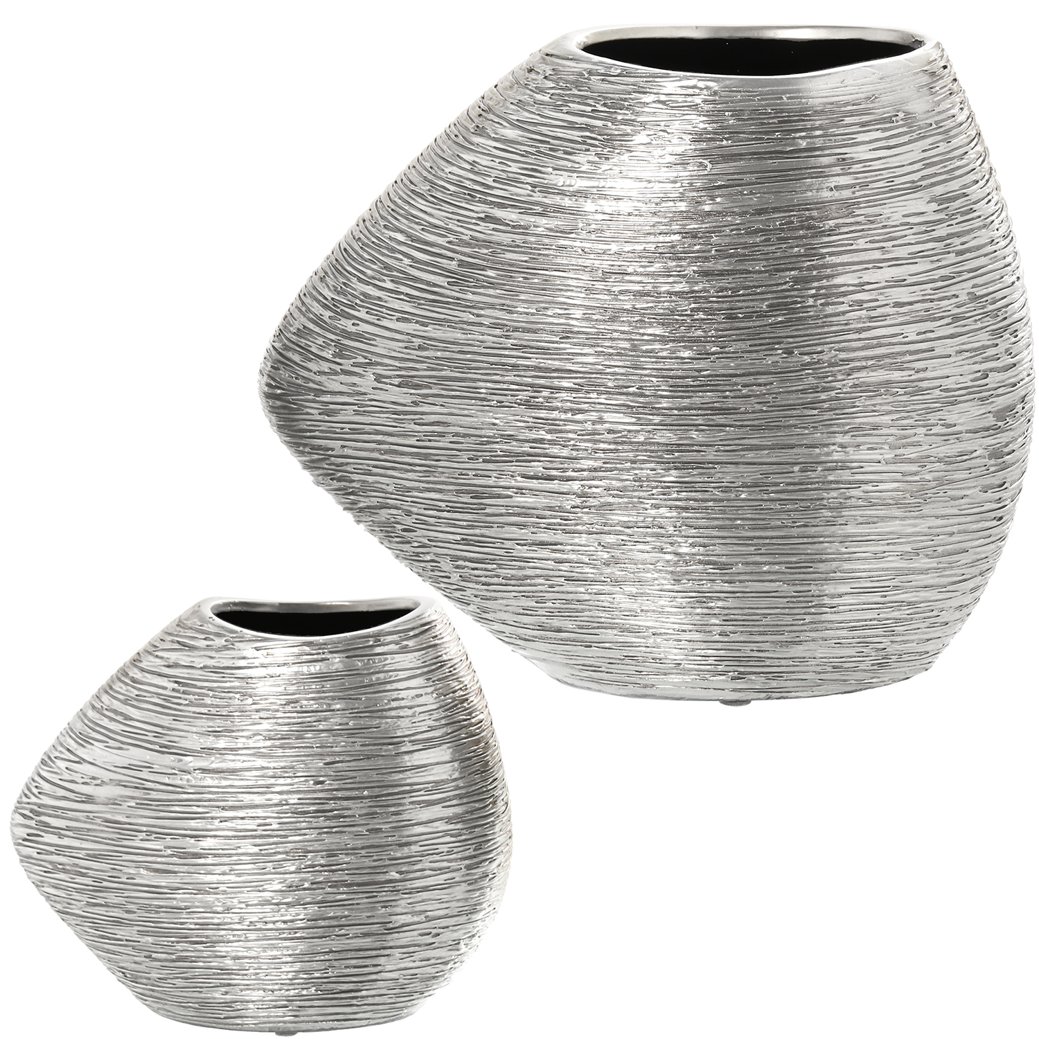 SET 2 JARRONES CERÁMICA PLATA _34X17X29 + 22X11,5X19CM
