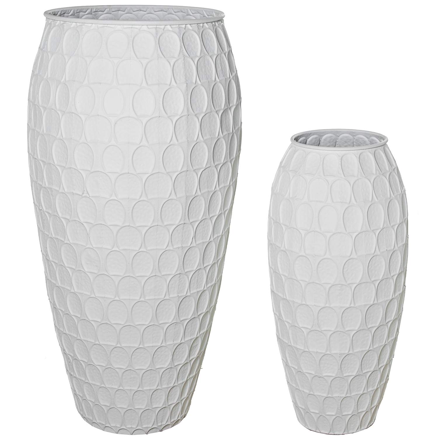 SET 2 JARRONES METAL BLANCO _L0:64,5X64,5X126 S0:43X43X91