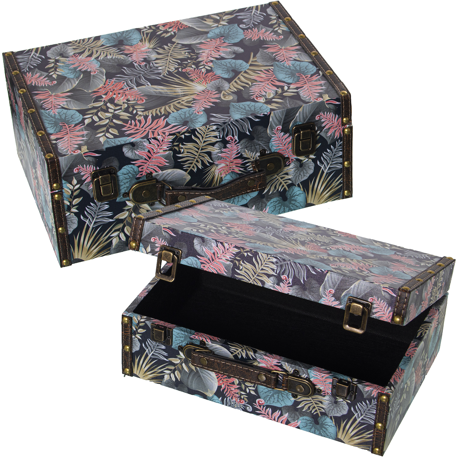 SET 2 MALETAS DECORADAS MADERA DECORADO FLORES 34,5X24,5X14+30X20X11,5CM