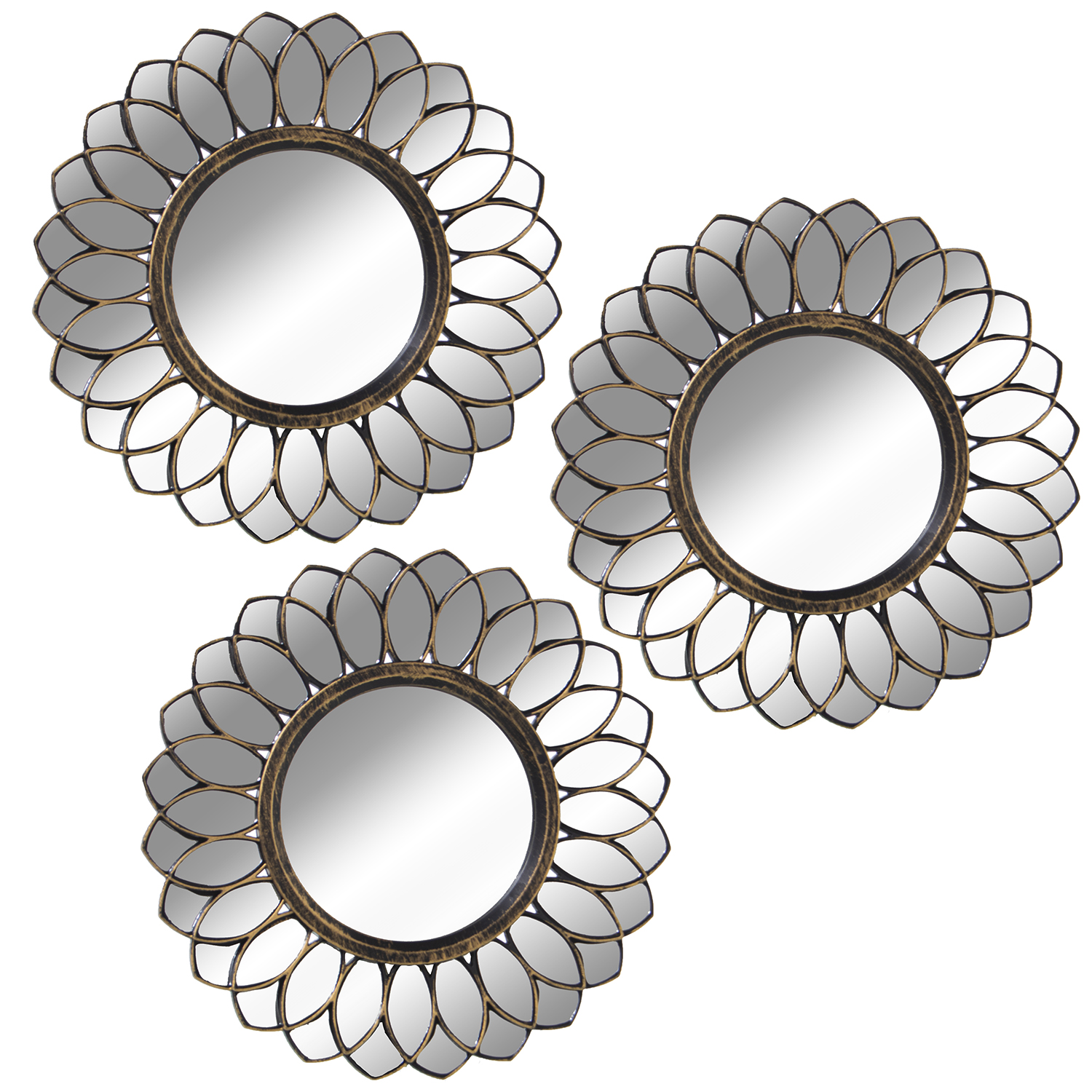 SET 3 ADORNOS PARED ESPEJO C/MELAMINA DORADA _ø25CM
