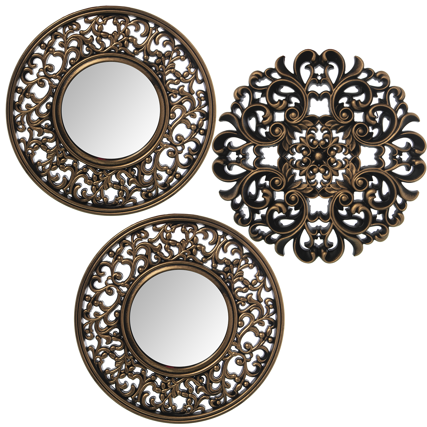 SET 3 ADORNOS PARED MELAMINA DLATEADA C/ESPEJO _ø25CM (1 SIN ESPEJO)