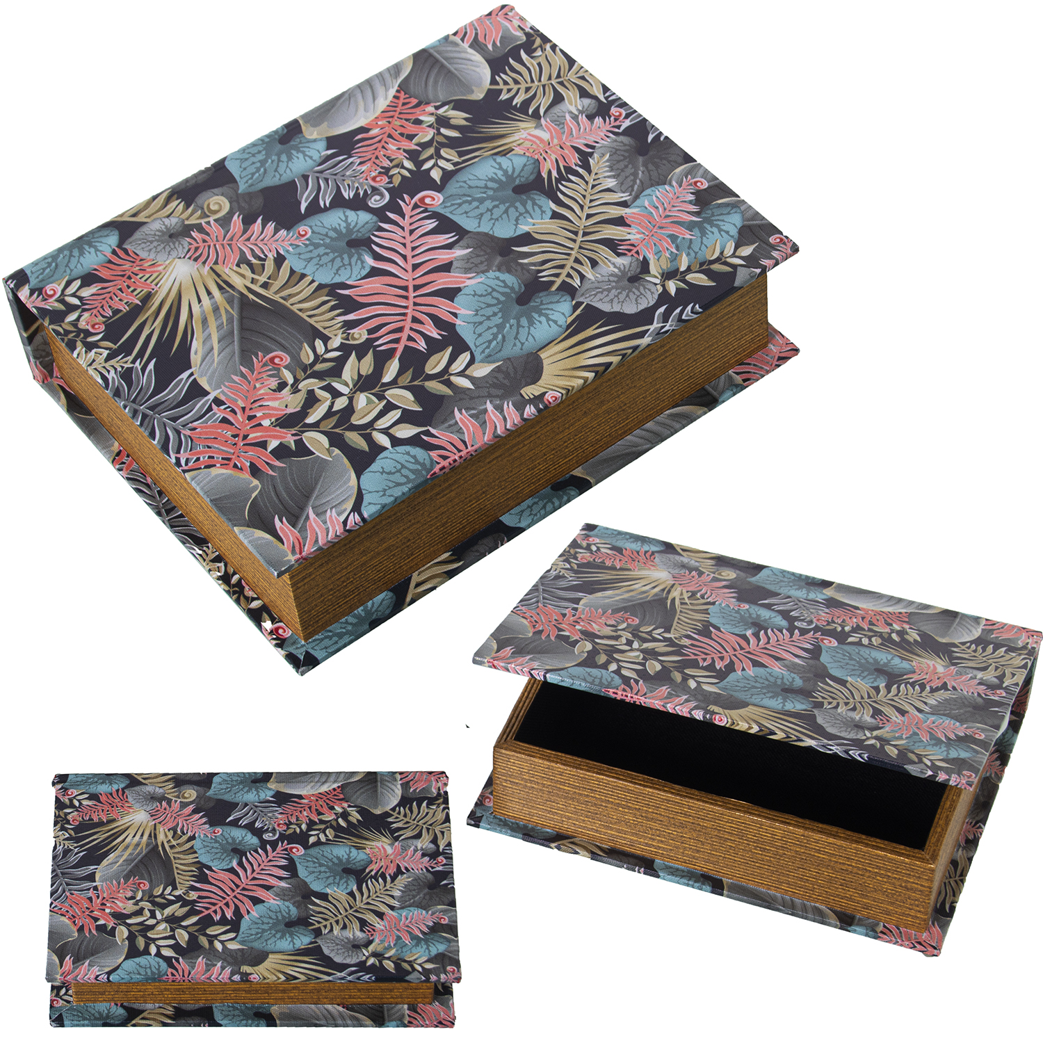 SET 3 CAJAS LIBROS DECORADOS MDERA DM/LONA POLIÉSTER ROSA