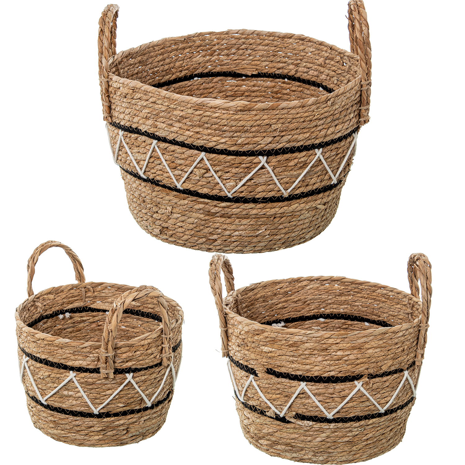 SET 3 CESTOS HIERBA DE MAR NATNCO/NATURAL+ ALGODÓN NEGRO _ø34X25+ø29X21+ø26X19CM