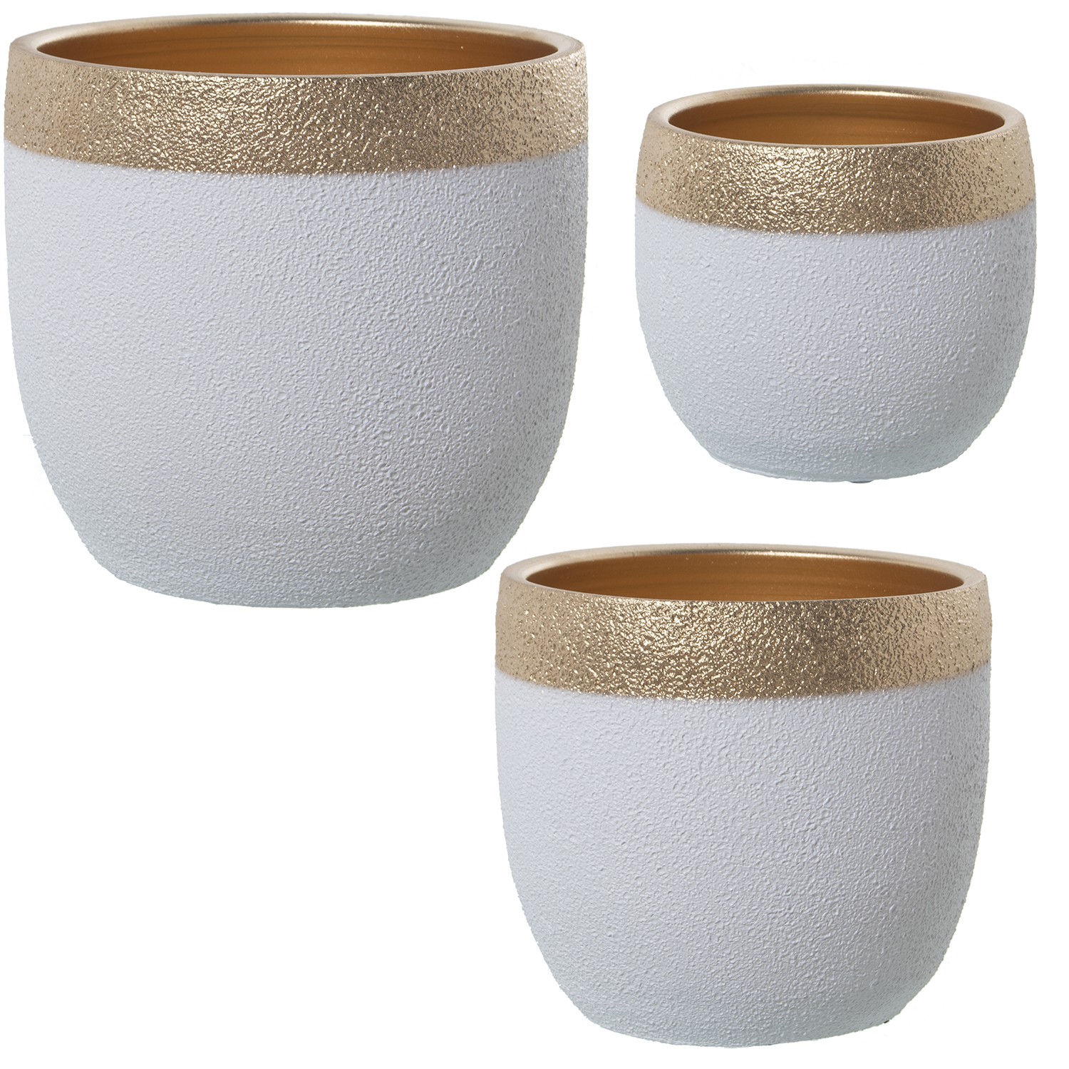 SET 3 MACETEROS BLANCO/DORADORILLO ø20X19+ø26X24+ø30X29CM