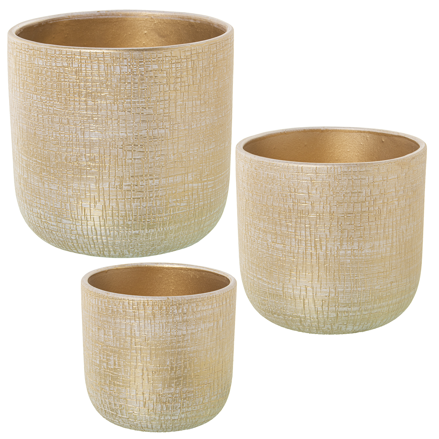 SET 3 MACETEROS CERÁMICA DORADO ø20X19CM+ø25X24CM+ø30X28CM