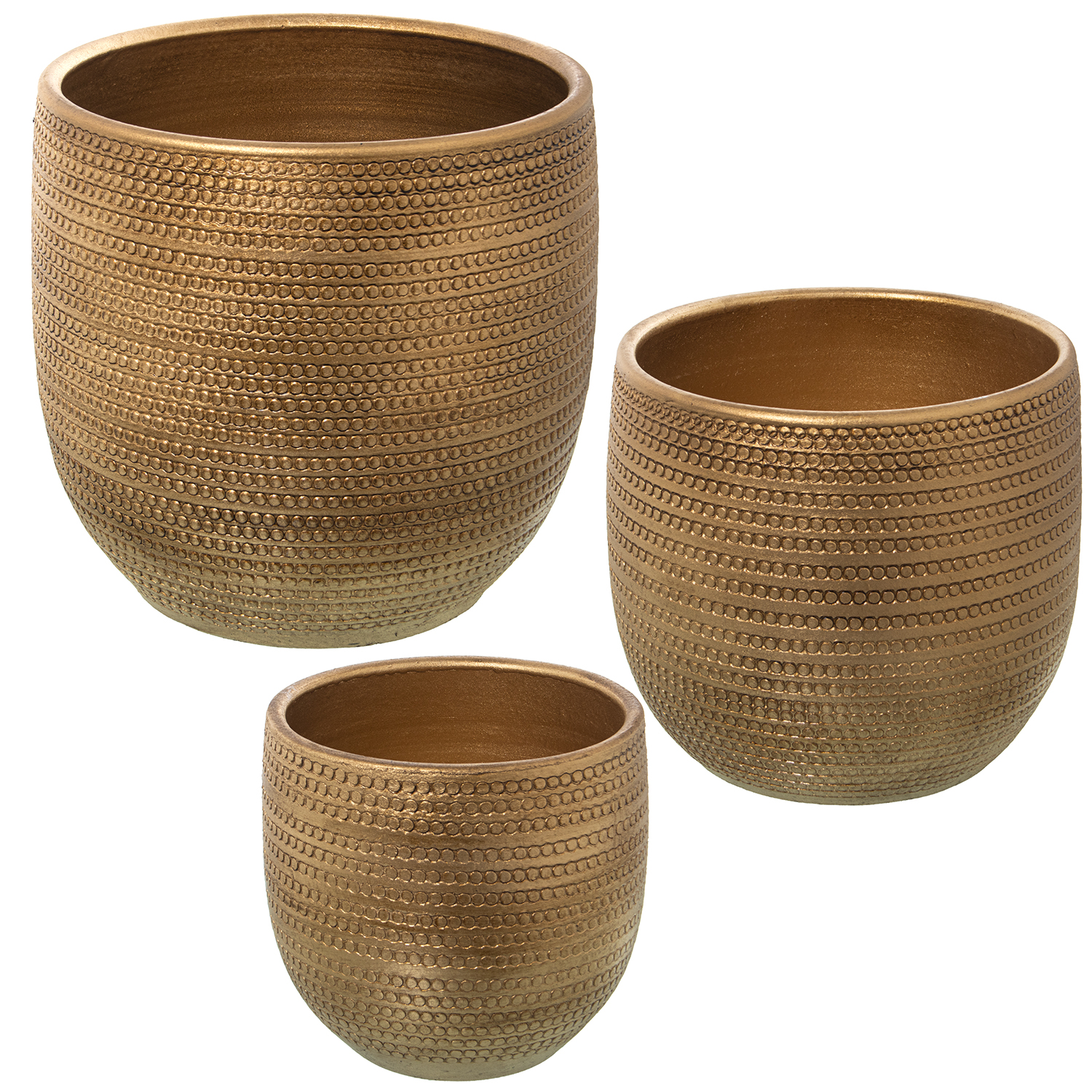 SET 3 MACETEROS CERÁMICA ORO VIEJO _ø27X28CM+ø23X23CM+ø19X19CM