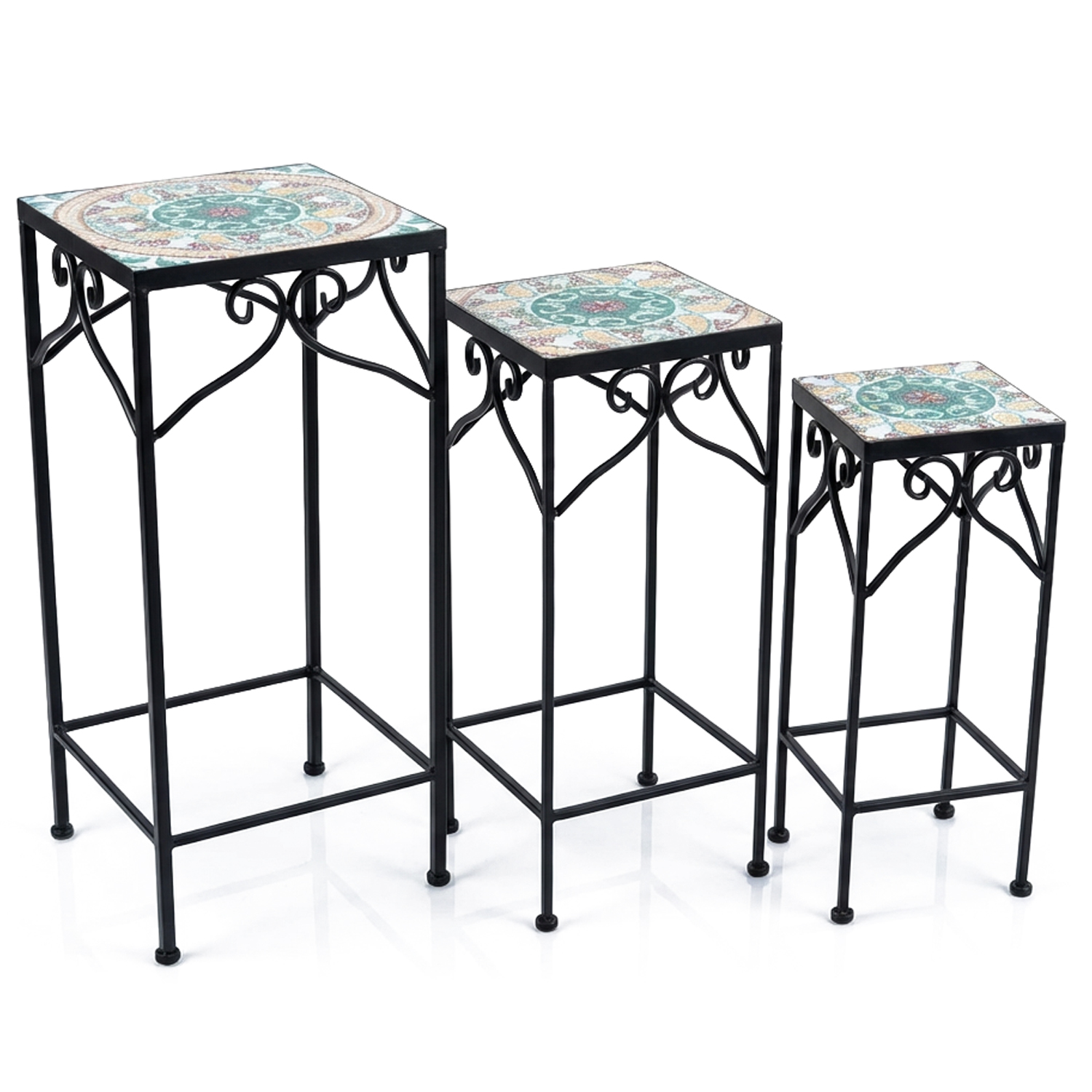 SET 3 PEDESTALES PIEDRA/METALNEGRO _28X28X70+23X23X60+18X18X50CM