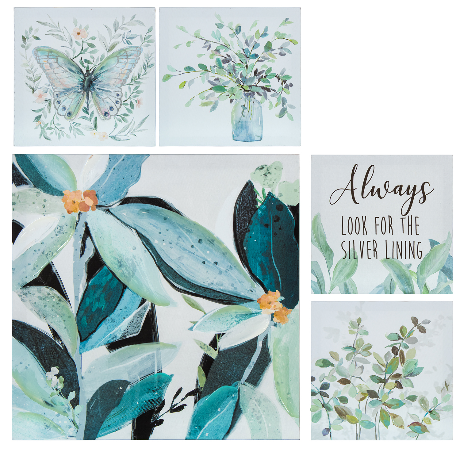 SET 5 CUADROS LIENZO FLORESDERA NATURAL _1-50X50X1,5CM, 4-22X22X1,2CM