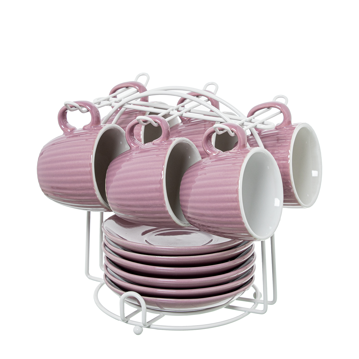 SET 6 TAZAS CAFÉ C/PLATO CERÁMA ROSA PALO C/SOPORTE METAL BL