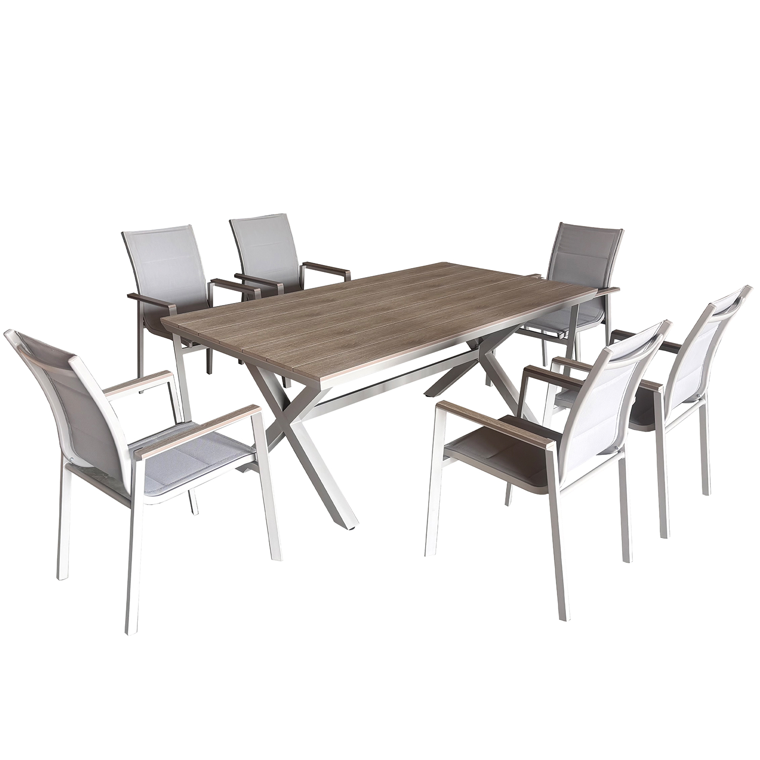 SET MESA Y 6 SILLAS EXTERIOR A+ MESA ALUMINIO CREMA