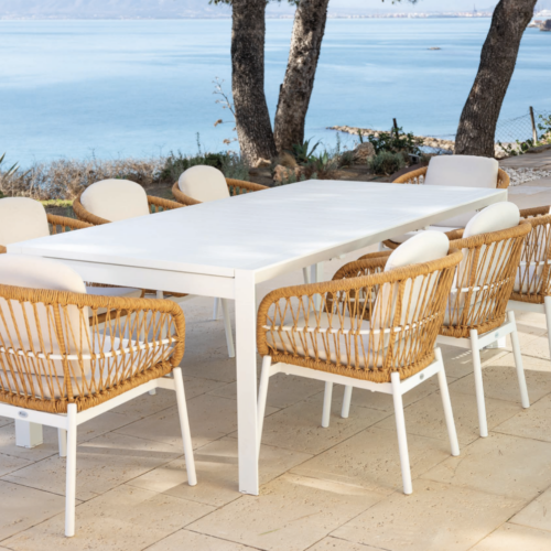 Set relax Loreto de la colección exterior Majestic Garden. compuesto por mesa chic | mesa loreto | 2 sillones. Fabricado en aluminio, madera, olefina. con acabados en color beige y antracita. Cojinería de Olefina en color beige. Reposabrazos de madera. Medidas: 69×95,5×87,5 cm | 48,5×48,5×55 cm.