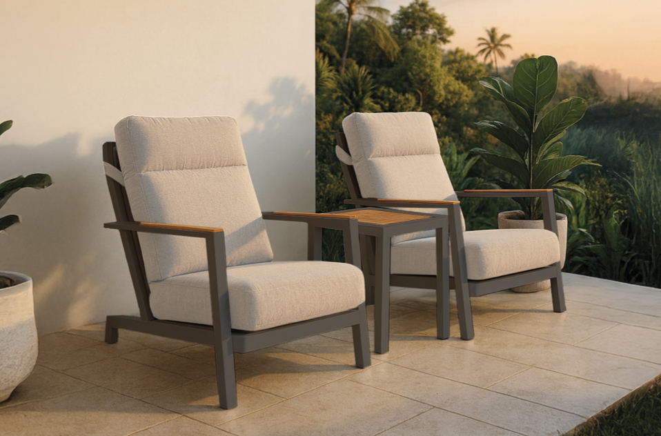 Set relax Loreto para exterior con mesa chic | mesa loreto | 2 sillones fabricado en aluminio, madera en color beige y antracita cojinería de olefina en color beige