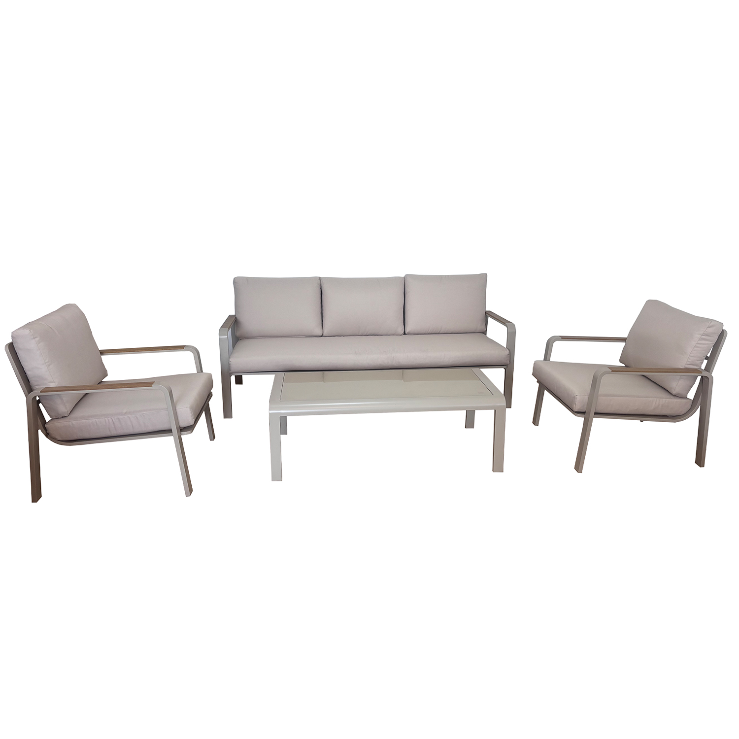SET SOFA 3 PLAZAS + 2 SILLONES+ MESA ALUMINIO BLANCO