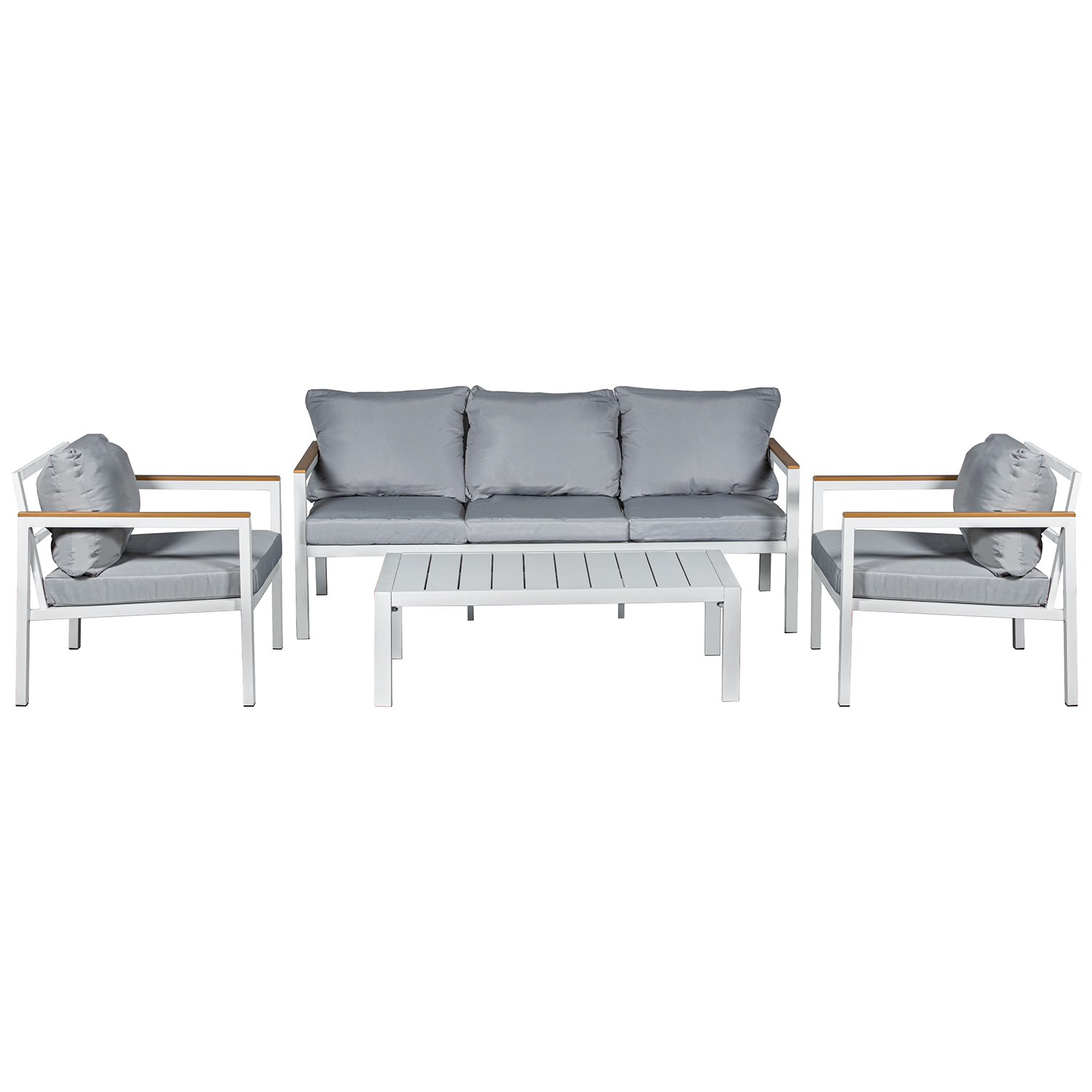 SET SOFÁ 3P+2 SILLONES+MESA ALUMINIO ANTRACITA COJINES BEIGE