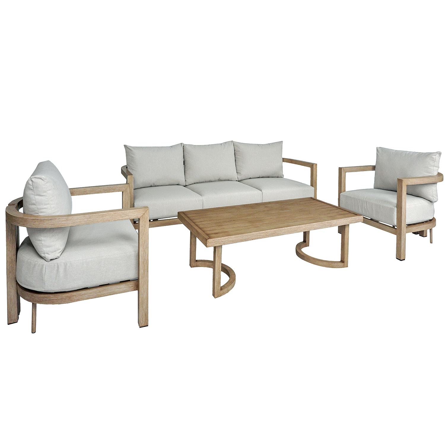 SET SOFA 3P+2 SILLONES+MESA CENTRO ALUMINIO/CUERDA