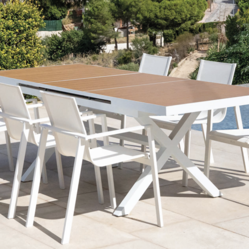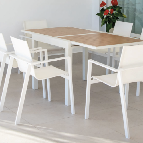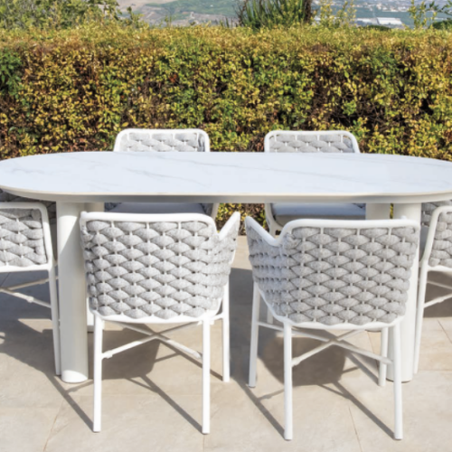 Sillón Chic de exterior fabricado en aluminio, cuerda en color blanco y antracita respaldo trenzado con cuerda de color antracita