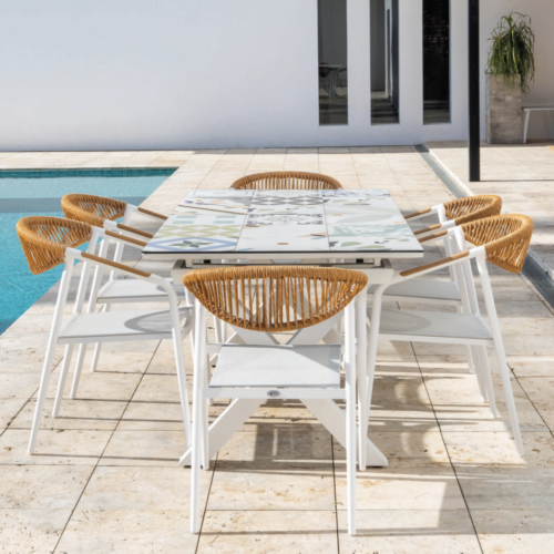 Sillón Florida de exterior fabricado en cuerda en color natural respaldo trenzado en cuerda color natural