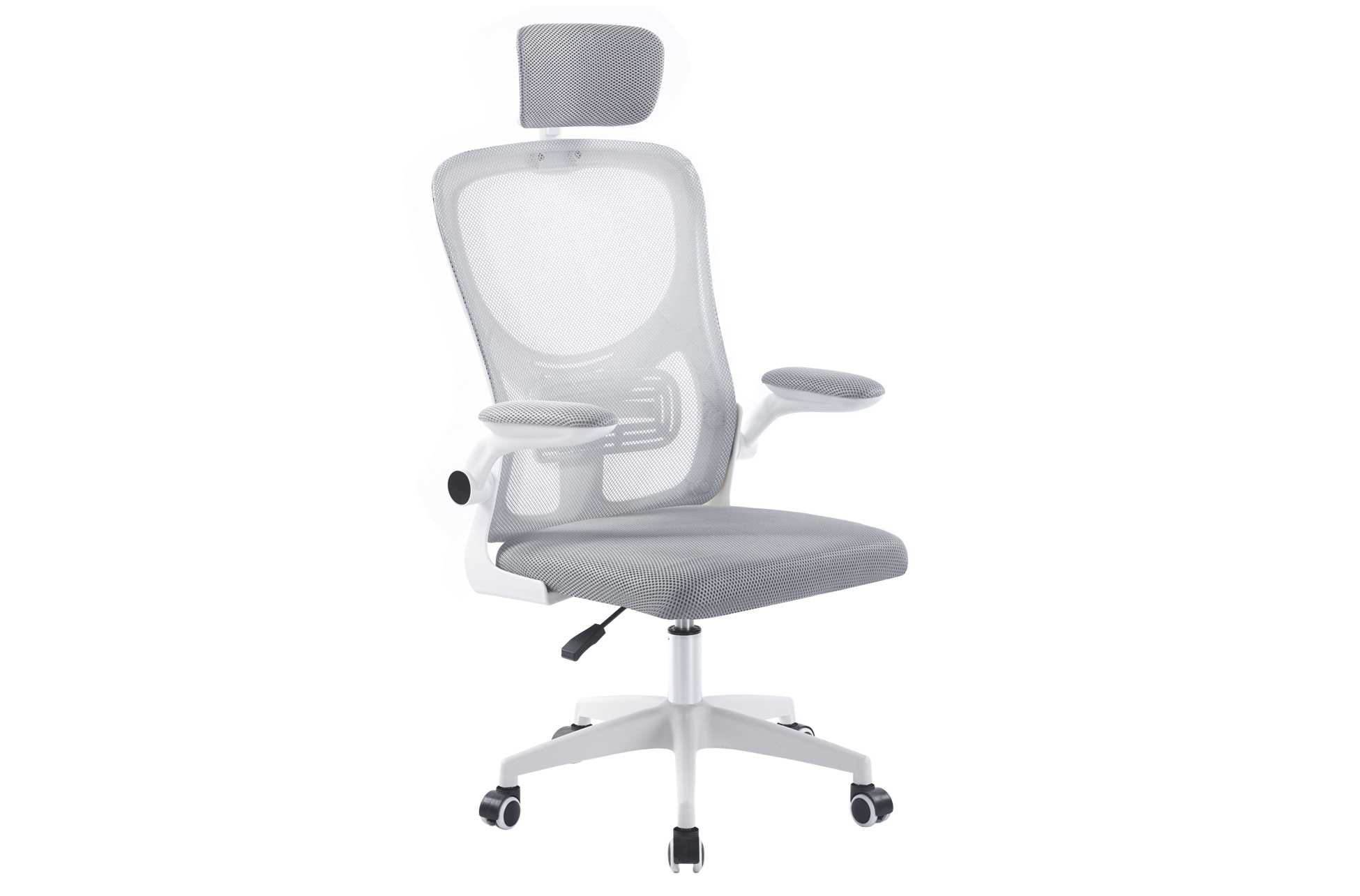 SILLON GIRATORIO CON REPOSACABEZAS AERO RED TRANSPIRABLE GRIS ESTRUCTURA BLANCA Sillon giratorio y regulable en altura.