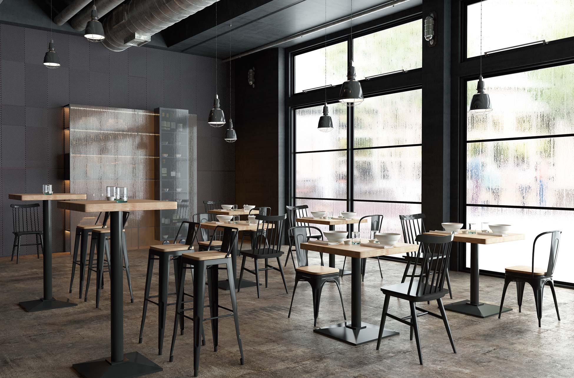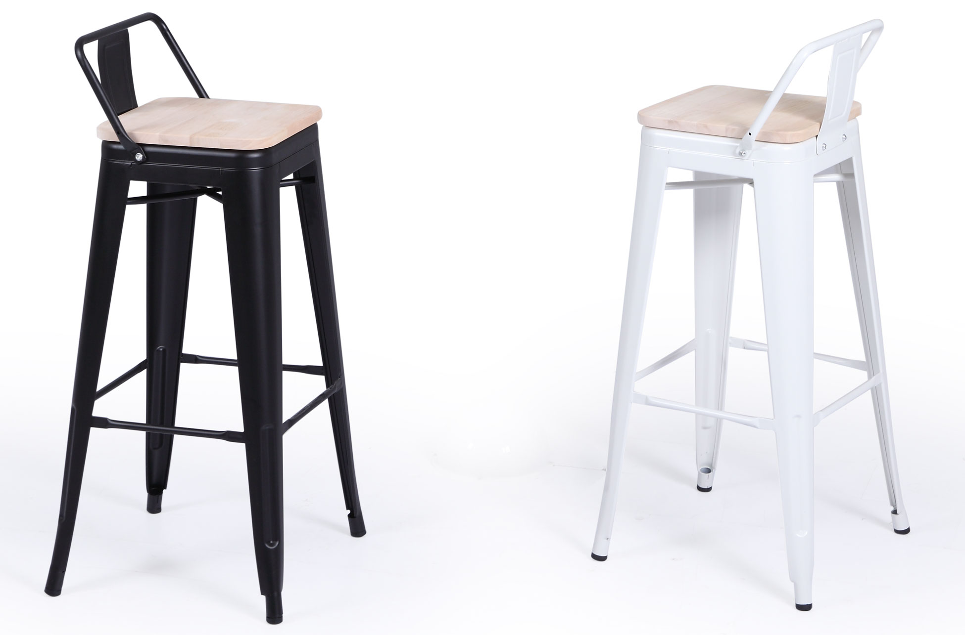 TABURETE ALTO TOLIX NEGRO ASIENTO MADERA ROBLE NORDISH.