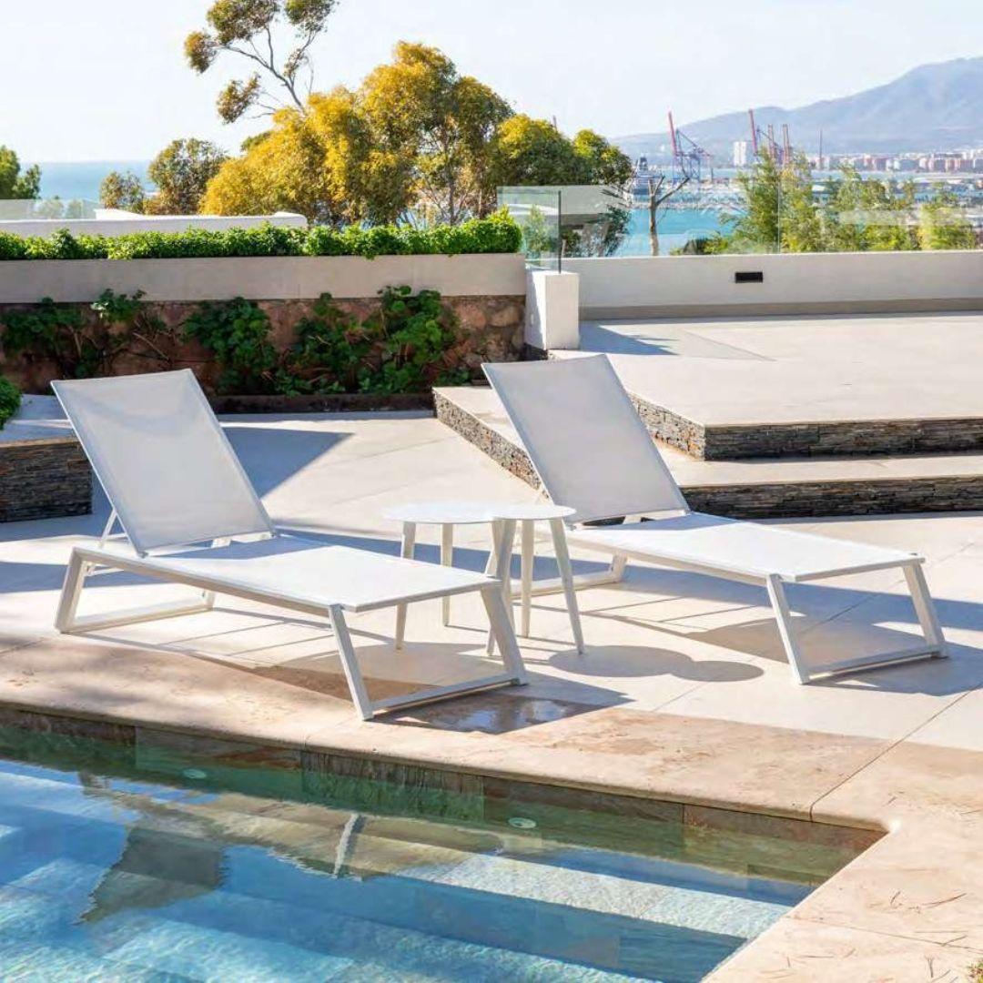 Tapizada en textilene de color blanco.