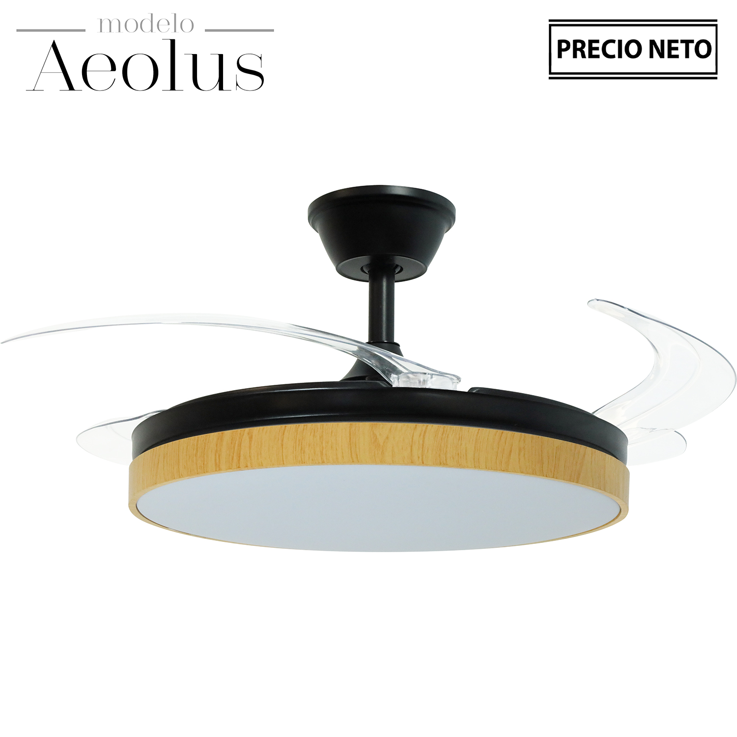 VENTILADOR TECHO C/LUZ 3 ASPAS RETRÁCT. BLANCO/MADERA AEOLUS