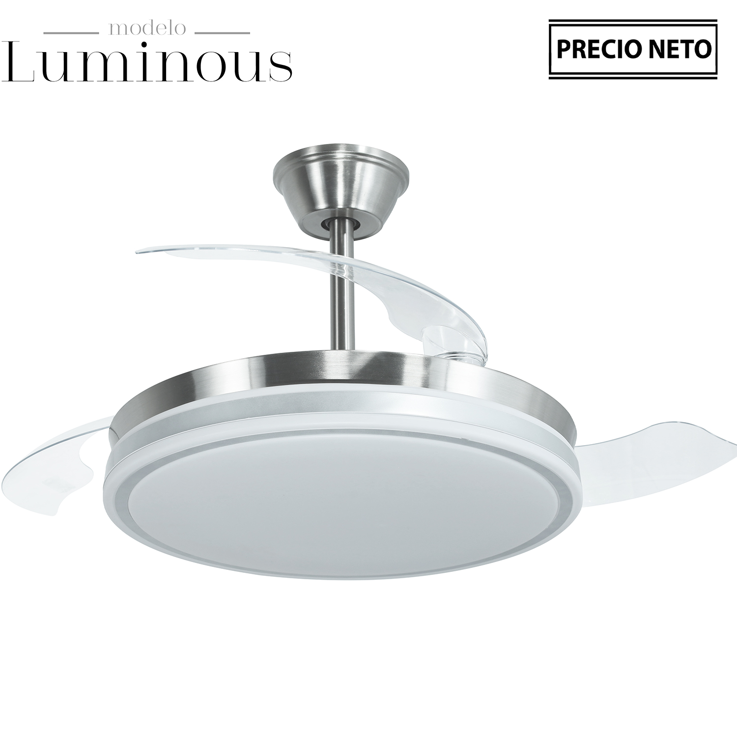 VENTILADOR TECHO C/LUZ 3 ASPAS RETRÁCTILES BLANCO LUMINOUS