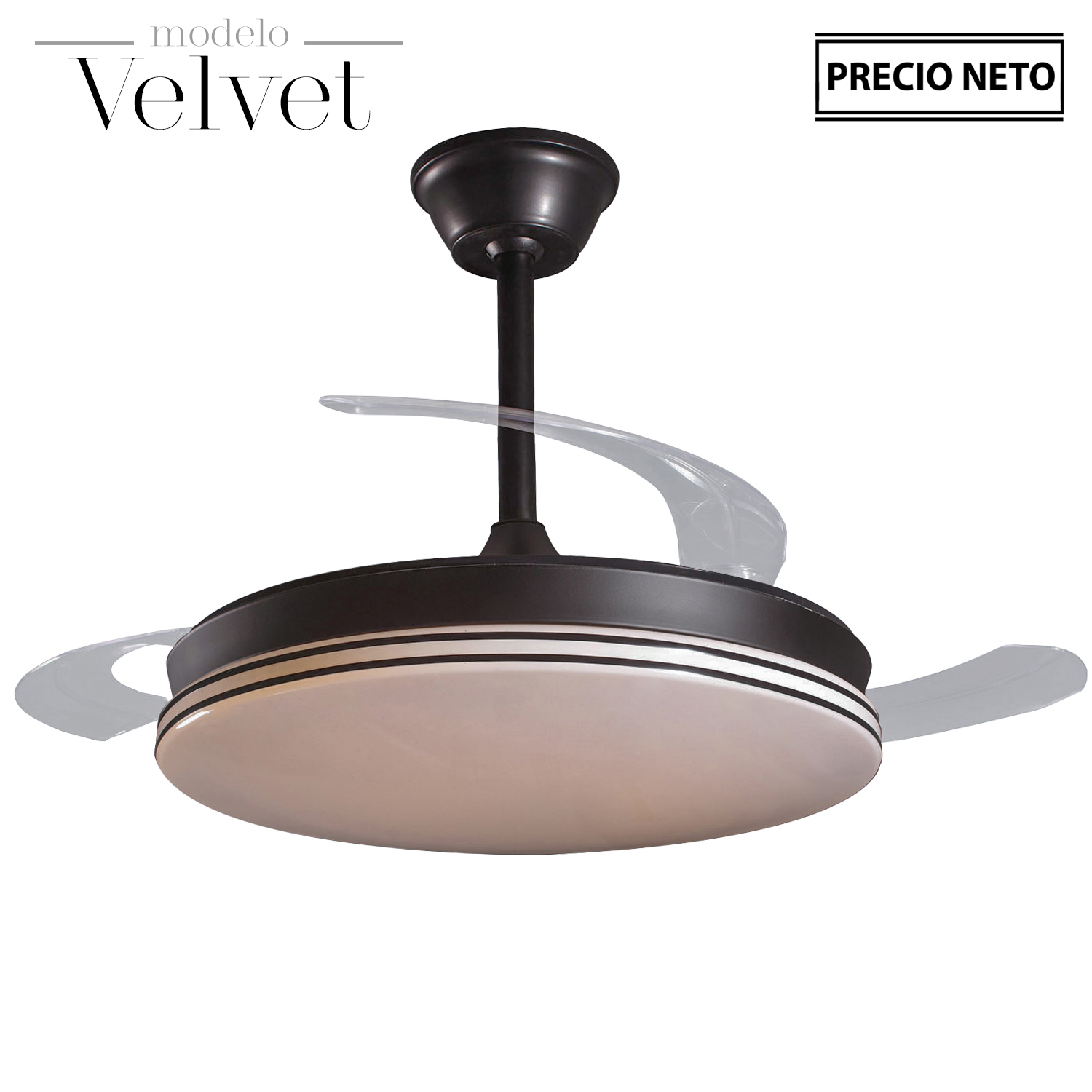 VENTILADOR TECHO C/LUZ 3 ASPAS RETRÁCTILES BLANCO VELVET