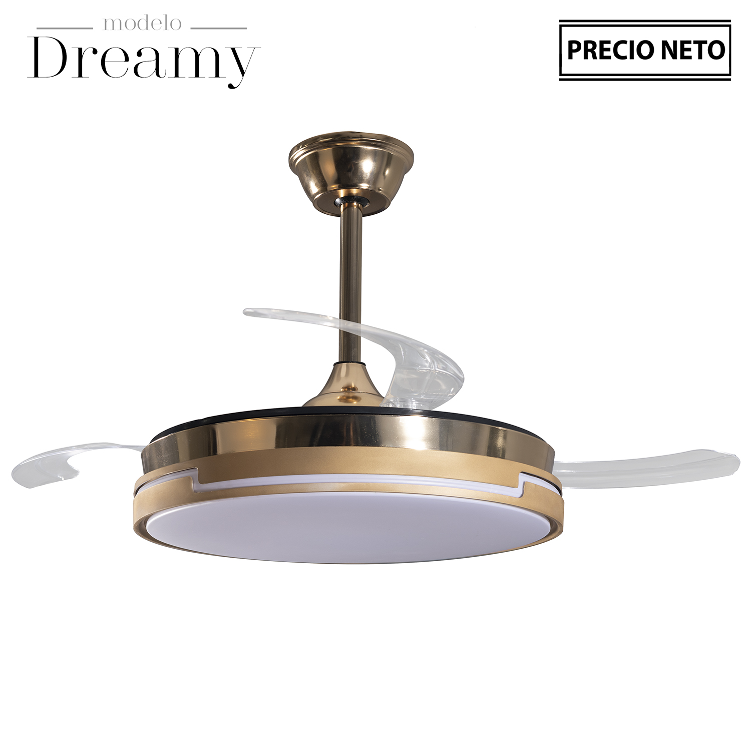 VENTILADOR TECHO C/LUZ 3 ASPAS RETRÁCTILES CROMADO DREAMY