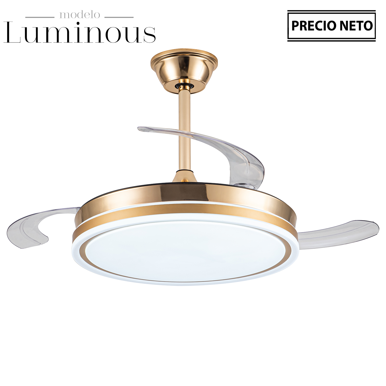 VENTILADOR TECHO C/LUZ 3 ASPAS RETRÁCTILES CROMADO LUMINOUS